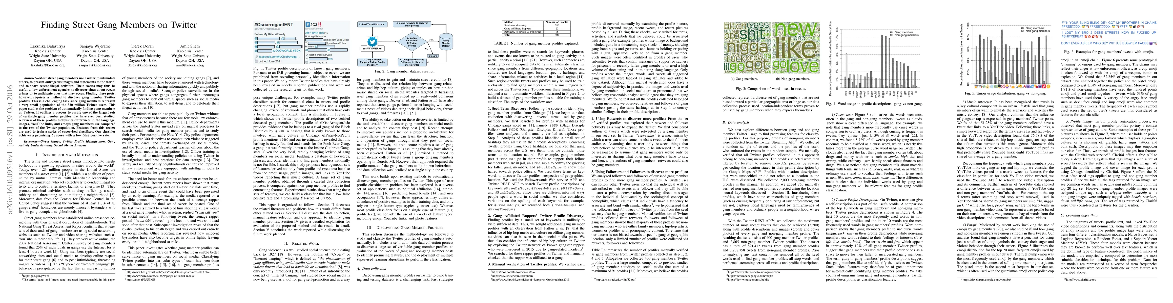 This paper presents a method to automatically identify street gang members on Twitter using supervised classifiers trained on verifiable profiles, achieving a promising F1 score with low false positives.