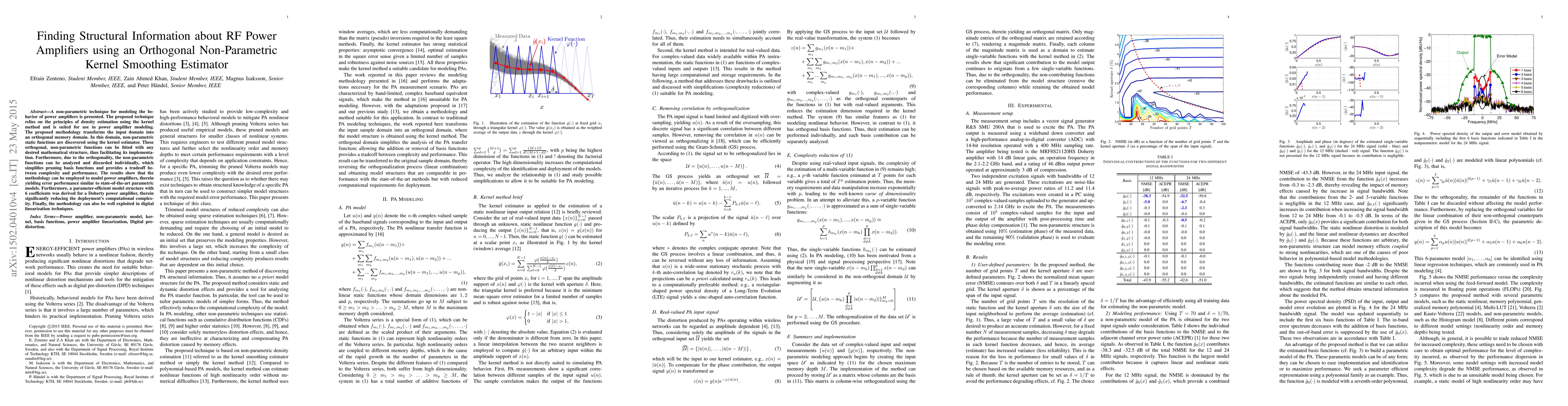 A non-parametric technique for modeling the behavior of power amplifiers is presented. The proposed technique relies on the principles of density estimation using the kernel method and is suited for use in power amplifier modeling. The proposed methodology transforms the input domain into an orthogonal memory domain. In this domain, non-parametric static functions are discovered using the kernel estimator. These orthogonal, non-parametric functions can be fitted with any desired mathematical structure, thus facilitating its implementation. Furthermore, due to the orthogonality, the non-parametric functions can be analyzed and discarded individually, which simplifies pruning basis functions and provides a tradeoff between complexity and performance. The results show that the methodology can be employed to model power amplifiers, therein yielding error performance similar to state-of-the-art parametric models. Furthermore, a parameter-efficient model structure with 6 coefficients was derived for a Doherty power amplifier, therein significantly reducing the deployment's computational complexity. Finally, the methodology can also be well exploited in digital linearization techniques.