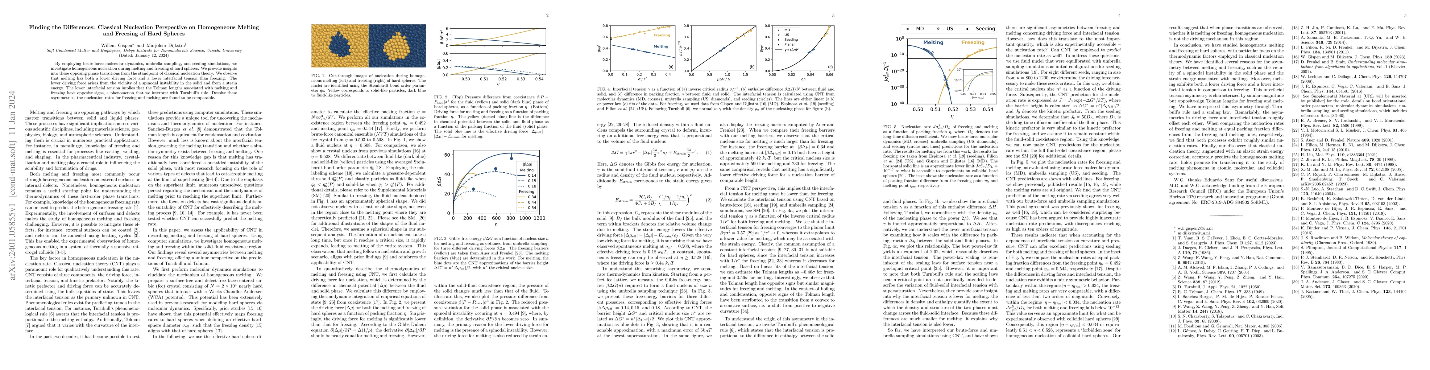This paper investigates homogeneous nucleation during melting and freezing of hard spheres using molecular dynamics techniques. It finds that melting has a lower driving force and interfacial tension than freezing, with comparable nucleation rates for both processes, and explains the differences through classical nucleation theory and Turnbull's rule.