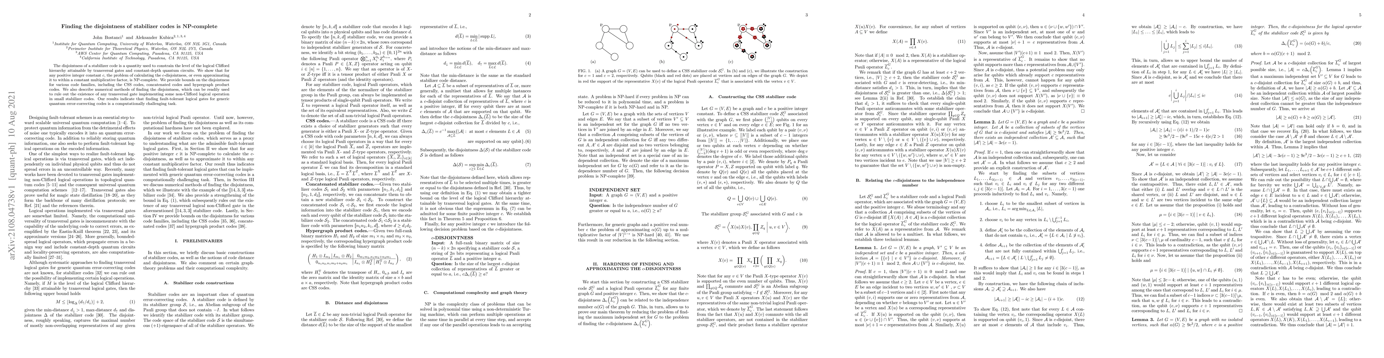 The paper demonstrates that determining the $c$-disjointness of stabilizer codes, a measure for logical Clifford hierarchy, is NP-complete. It provides numerical methods to explore the disjointness of various code families, indicating the computational difficulty in finding fault-tolerant logical gates in quantum error-correcting codes.