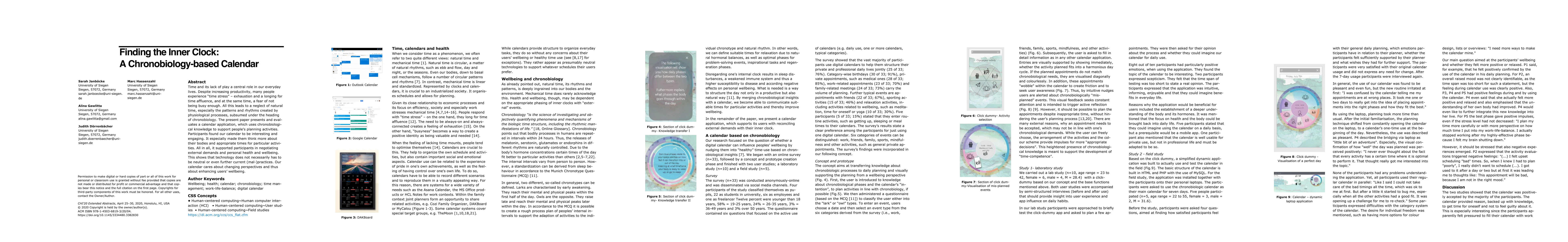 Time and its lack of play a central role in our everyday lives. Despite increasing productivity, many people experience time stress, exhaustion and a longing for time affluence, and at the same time, a fear of not being busy enough. All this leads to a neglect of natural time, especially the patterns and rhythms created by physiological processes, subsumed under the heading of chronobiology. The present paper presents and evaluates a calendar application, which uses chronobiological knowledge to support people s planning activities. Participants found our calendar to be interesting and engaging. It especially made them think more about their bodies and appropriate times for particular activities. All in all, it supported participants in negotiating. external demands and personal health and wellbeing. This shows that technology does not necessarily has to be neutral or even further current (mal-)practices. Our calendar cares about changing perspectives and thus about enhancing users wellbeing.