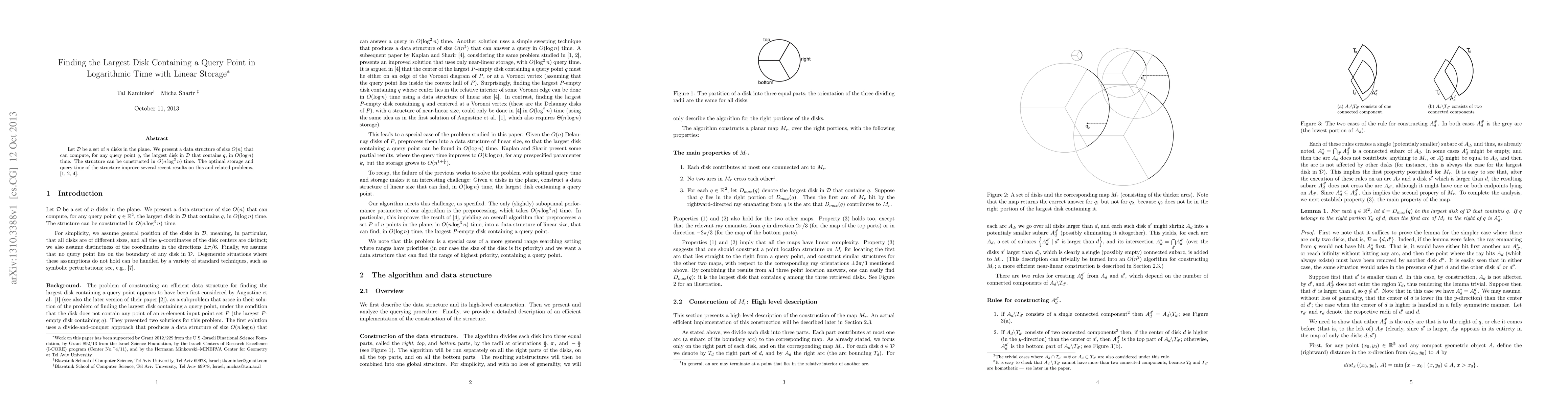 Let D be a set of n disks in the plane. We present a data structure of size O(n) that can compute, for any query point q, the largest disk in D that contains q, in O(log n) time. The structure can be constructed in O(n log^3 n) time. The optimal storage and query time of the structure improve several recent solutions by Augustine et al. and by Kaplan and Sharir.