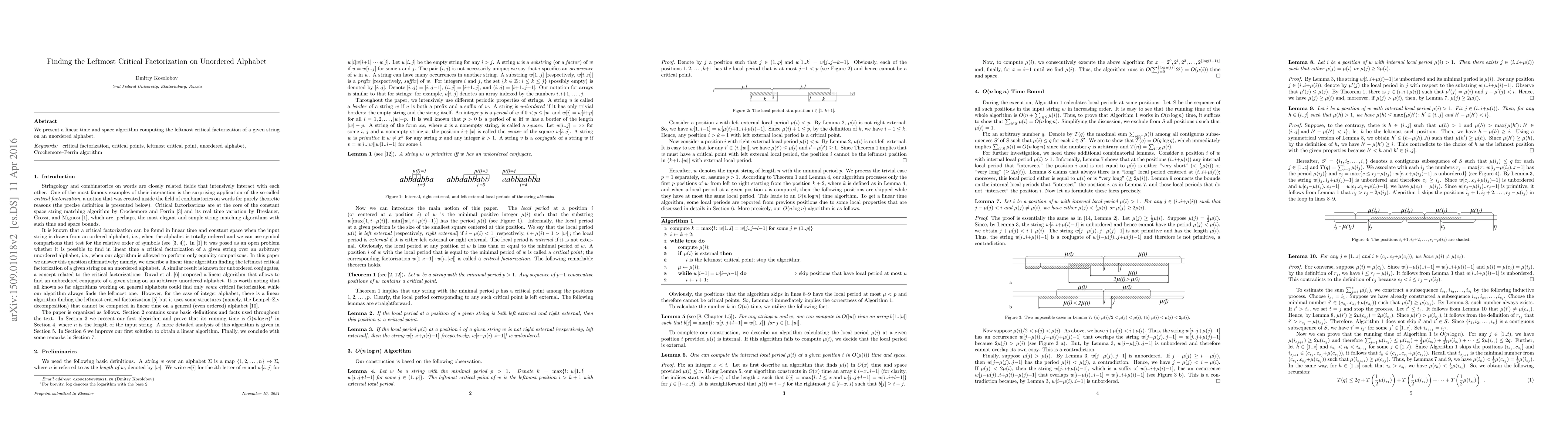We present a linear time and space algorithm computing the leftmost critical factorization of a given string on an unordered alphabet.