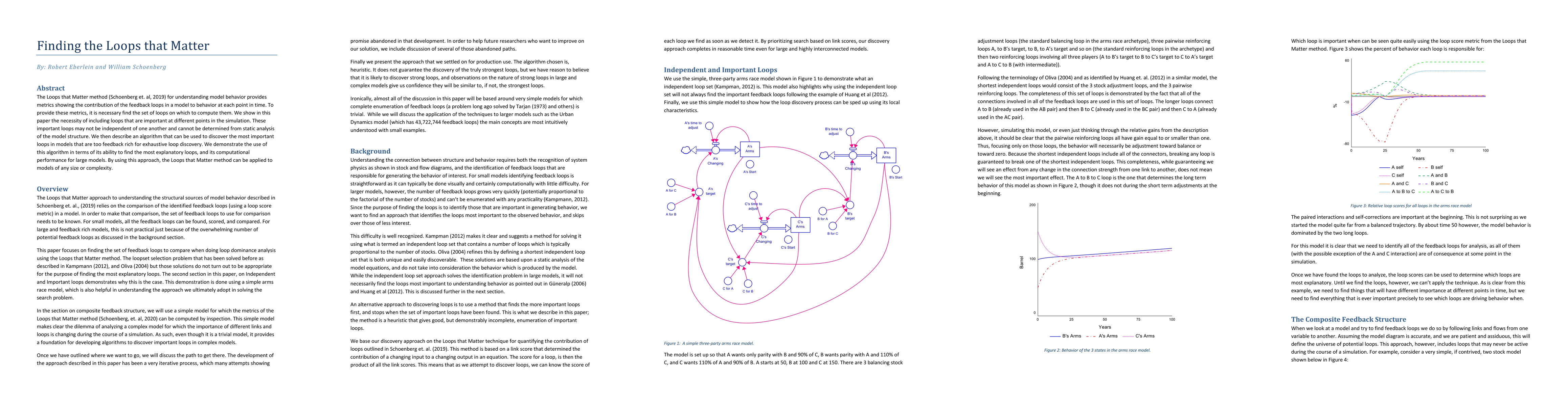 Researchers developed an algorithm to identify critical feedback loops in complex models, enabling the application of the Loops that Matter method to models of any size or complexity. The approach helps find the most explanatory loops while balancing computational performance.