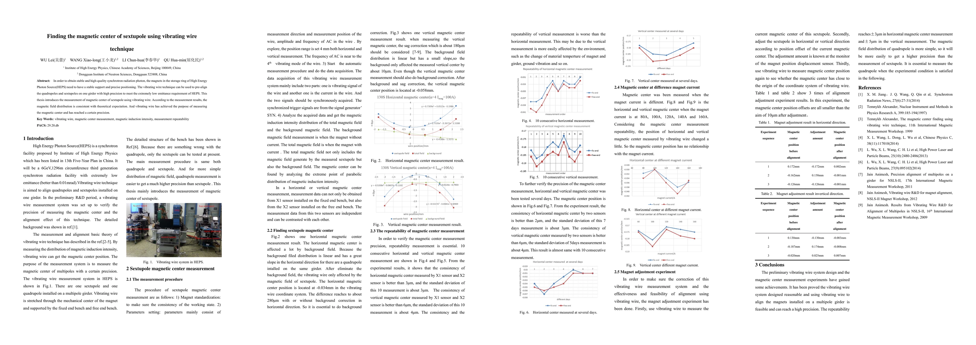 In order to obtain stable and high-quality synchrotron radiation photon, the magnets in the storage ring of High Energy Photon Source(HEPS) need to have a stable support and precise positioning. The vibrating wire technique can be used to pre-align the quadrupoles and sextupoles on one girder with high precision to meet the extremely low emittance requirement of HEPS. This thesis introduces the measurement of magnetic center of sextupole using vibrating wire. According to the measurement results, the magnetic field distribution is consistent with theoretical expectation. And vibrating wire has achieved the purpose of measuring the magnetic center and has reached a certain precision.