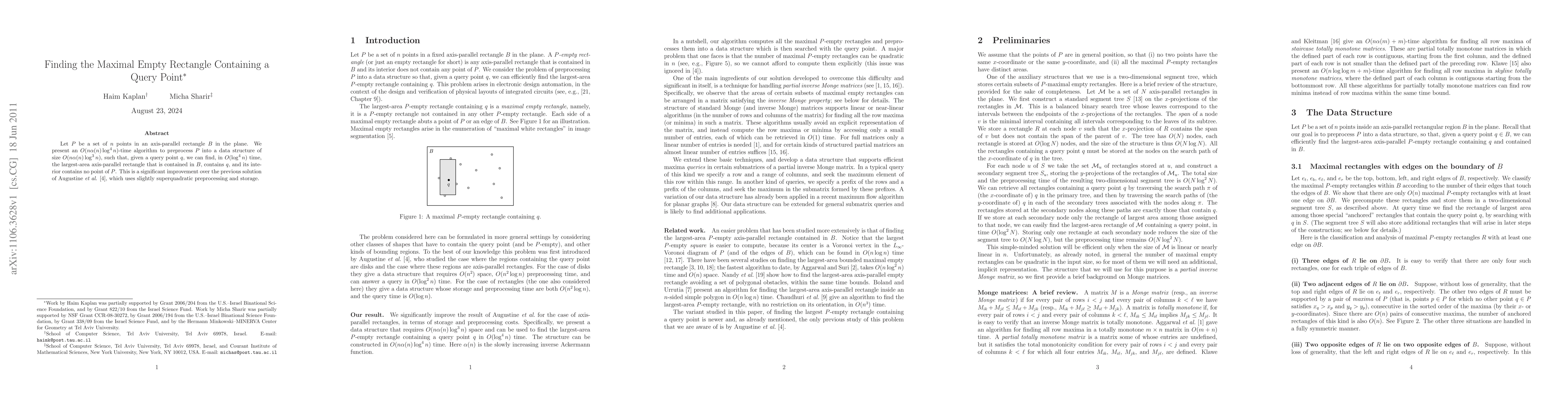 This research presents an algorithm that efficiently finds the largest empty rectangle containing a query point within a given axis-parallel rectangle. The method reduces preprocessing and storage to O(nα(n)log^3 n) and query time to O(log^4 n), significantly improving upon previous solutions that had superquadratic complexity.