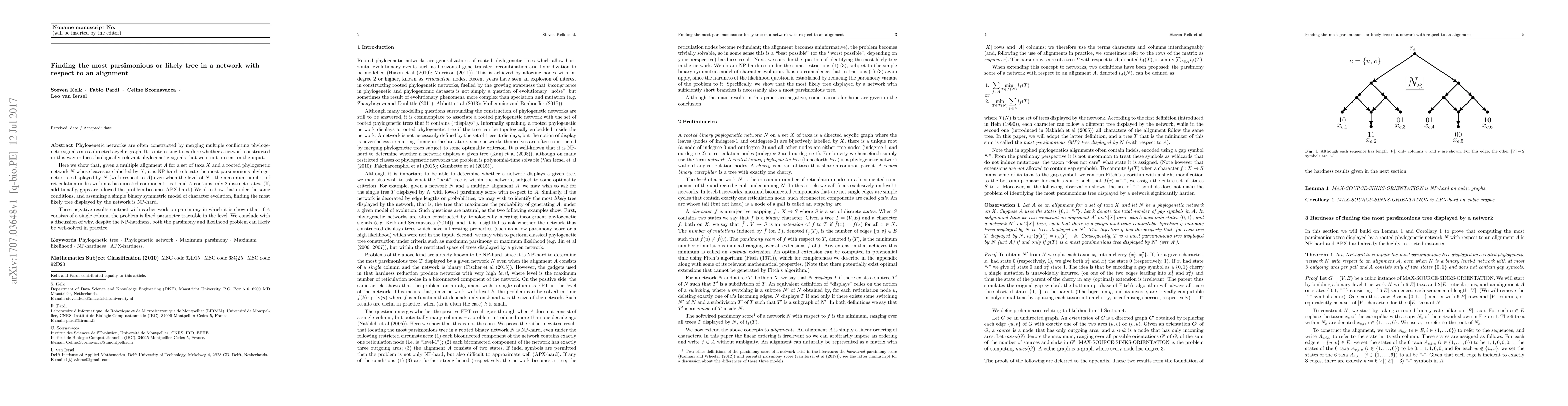 Finding the most parsimonious tree in a network is NP-hard, even with a simple alignment and limited reticulation nodes. This challenges earlier work on fixed parameter tractability.