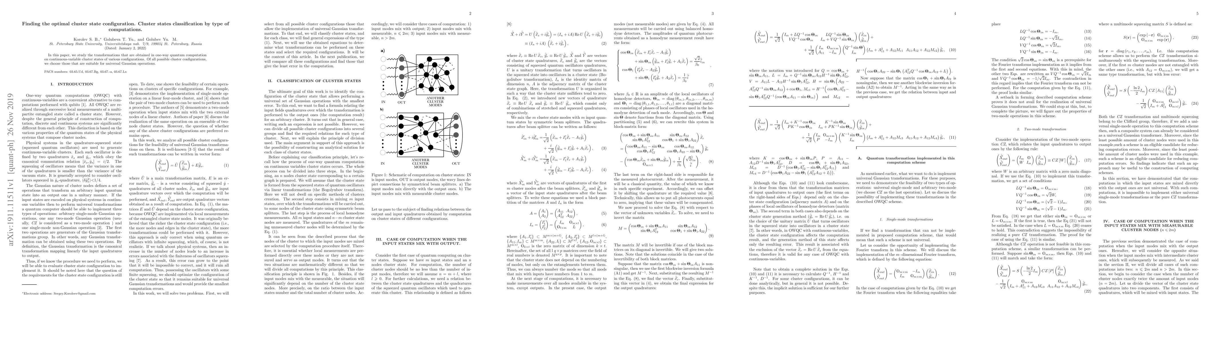 Summary: This paper investigates the transformations in one-way quantum computation on continuous-variable cluster states, focusing on identifying optimal configurations for universal Gaussian operations. The study classifies cluster states based on their suitability for such computations.
