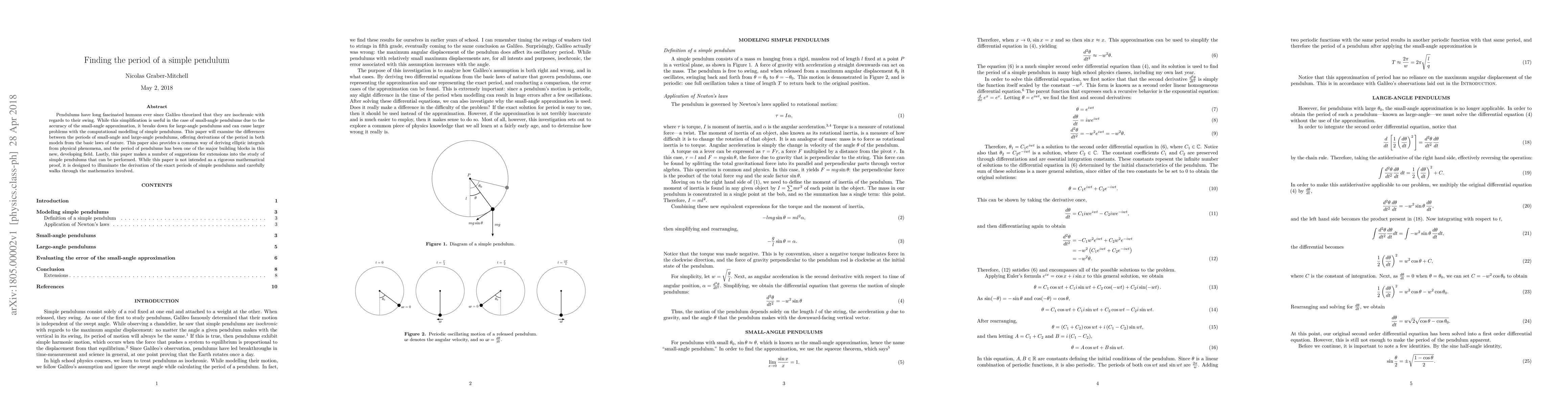 This paper investigates the periods of simple pendulums for both small-angle and large-angle models, offering derivations from basic laws of nature and implications for future research extensions.