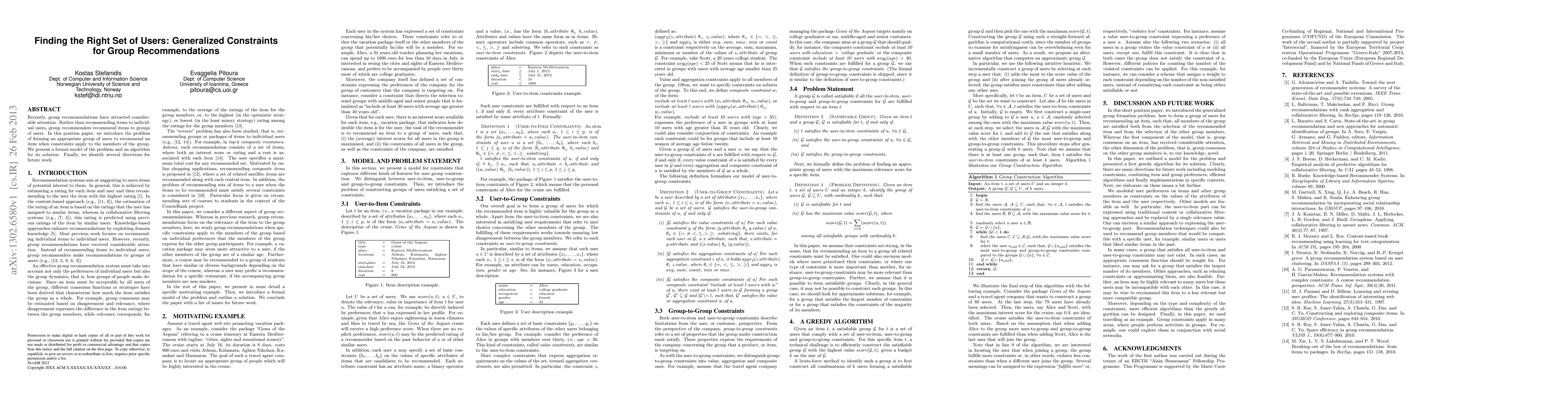 Recently, group recommendations have attracted considerable attention. Rather than recommending items to individual users, group recommenders recommend items to groups of users. In this position paper, we introduce the problem of forming an appropriate group of users to recommend an item when constraints apply to the members of the group. We present a formal model of the problem and an algorithm for its solution. Finally, we identify several directions for future work.