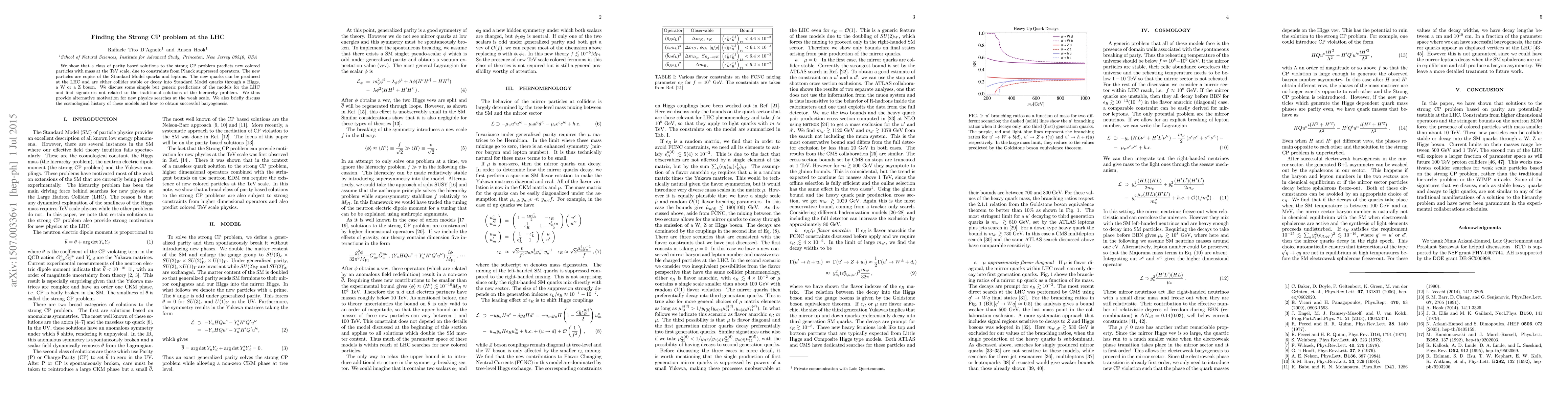 We show that a class of parity based solutions to the strong CP problem predicts new colored particles with mass at the TeV scale, due to constraints from Planck suppressed operators. The new particles are copies of the Standard Model quarks and leptons. The new quarks can be produced at the LHC and are either collider stable or decay into Standard Model quarks through a Higgs, a W or a Z boson. We discuss some simple but generic predictions of the models for the LHC and find signatures not related to the traditional solutions of the hierarchy problem. We thus provide alternative motivation for new physics searches at the weak scale. We also briefly discuss the cosmological history of these models and how to obtain successful baryogenesis.