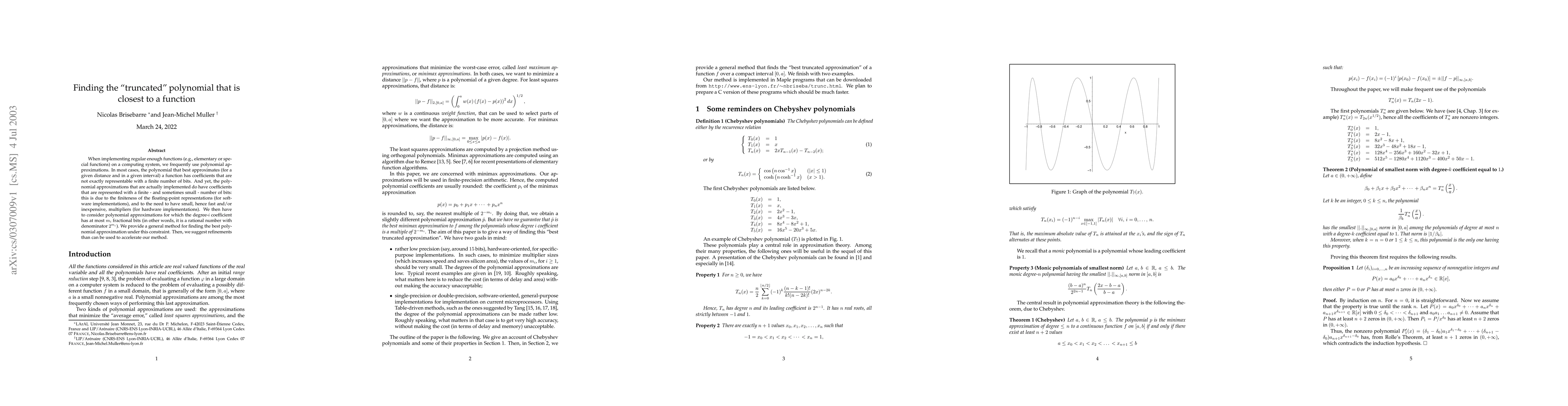 When implementing regular enough functions (e.g., elementary or special functions) on a computing system, we frequently use polynomial approximations. In most cases, the polynomial that best approximates (for a given distance and in a given interval) a function has coefficients that are not exactly representable with a finite number of bits. And yet, the polynomial approximations that are actually implemented do have coefficients that are represented with a finite - and sometimes small - number of bits: this is due to the finiteness of the floating-point representations (for software implementations), and to the need to have small, hence fast and/or inexpensive, multipliers (for hardware implementations). We then have to consider polynomial approximations for which the degree-$i$ coefficient has at most $m_i$ fractional bits (in other words, it is a rational number with denominator $2^{m_i}$). We provide a general method for finding the best polynomial approximation under this constraint. Then, we suggest refinements than can be used to accelerate our method.