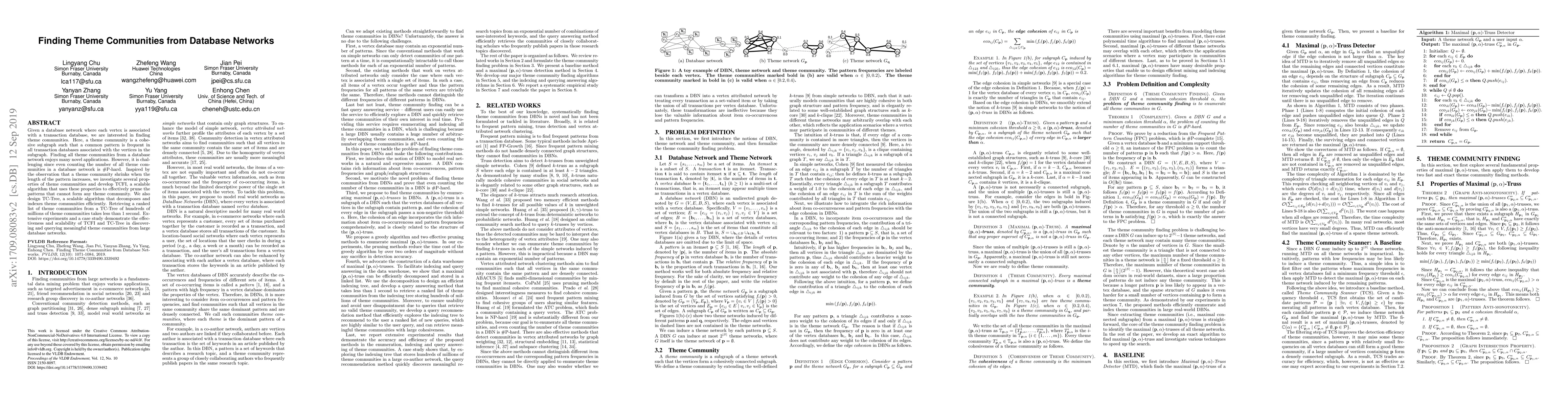 This paper presents scalable algorithms, TCFI and TC-Tree, for identifying theme communities in database networks where each vertex represents a transaction database. The algorithms efficiently prune irrelevant patterns and decompose theme communities, enabling rapid retrieval of meaningful theme communities from large datasets.