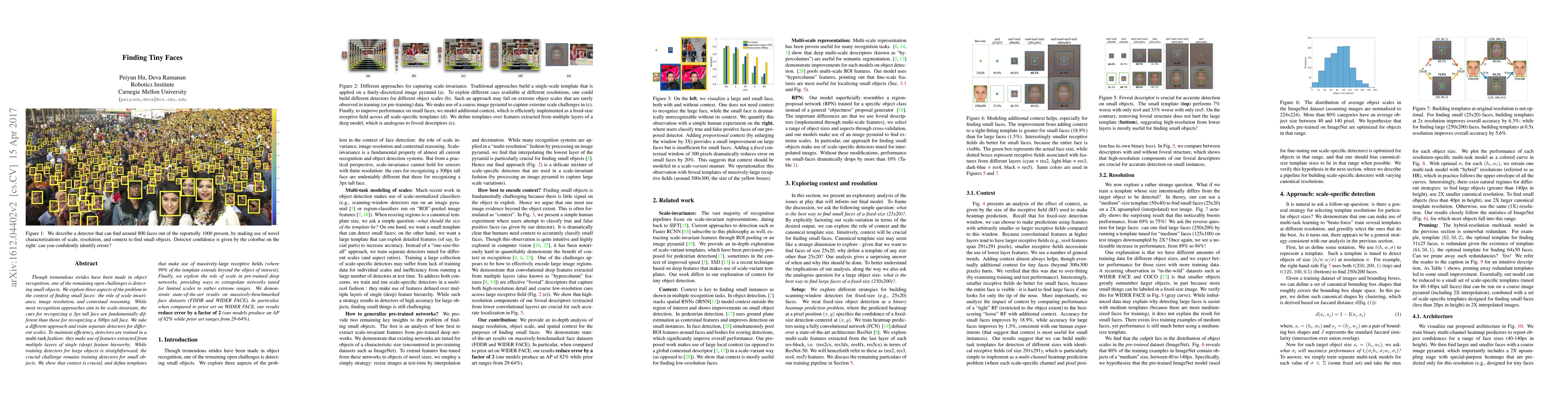 Though tremendous strides have been made in object recognition, one of the remaining open challenges is detecting small objects. We explore three aspects of the problem in the context of finding small faces: the role of scale invariance, image resolution, and contextual reasoning. While most recognition approaches aim to be scale-invariant, the cues for recognizing a 3px tall face are fundamentally different than those for recognizing a 300px tall face. We take a different approach and train separate detectors for different scales. To maintain efficiency, detectors are trained in a multi-task fashion: they make use of features extracted from multiple layers of single (deep) feature hierarchy. While training detectors for large objects is straightforward, the crucial challenge remains training detectors for small objects. We show that context is crucial, and define templates that make use of massively-large receptive fields (where 99% of the template extends beyond the object of interest). Finally, we explore the role of scale in pre-trained deep networks, providing ways to extrapolate networks tuned for limited scales to rather extreme ranges. We demonstrate state-of-the-art results on massively-benchmarked face datasets (FDDB and WIDER FACE). In particular, when compared to prior art on WIDER FACE, our results reduce error by a factor of 2 (our models produce an AP of 82% while prior art ranges from 29-64%).