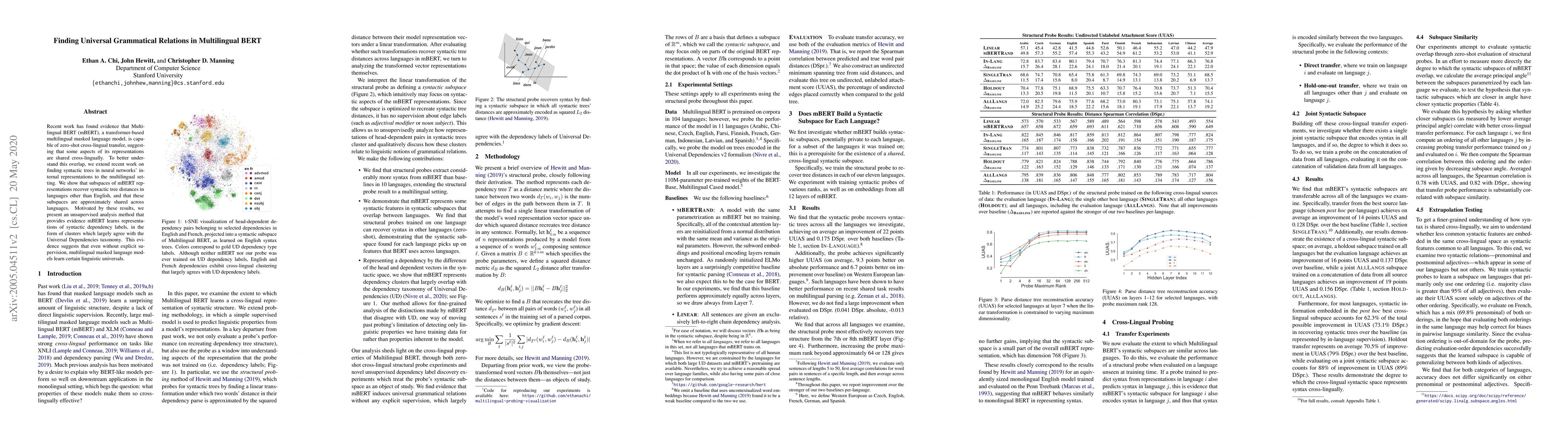 A study found that Multilingual BERT learns universal syntactic patterns across languages without explicit supervision, suggesting a shared representation of linguistic universals.
