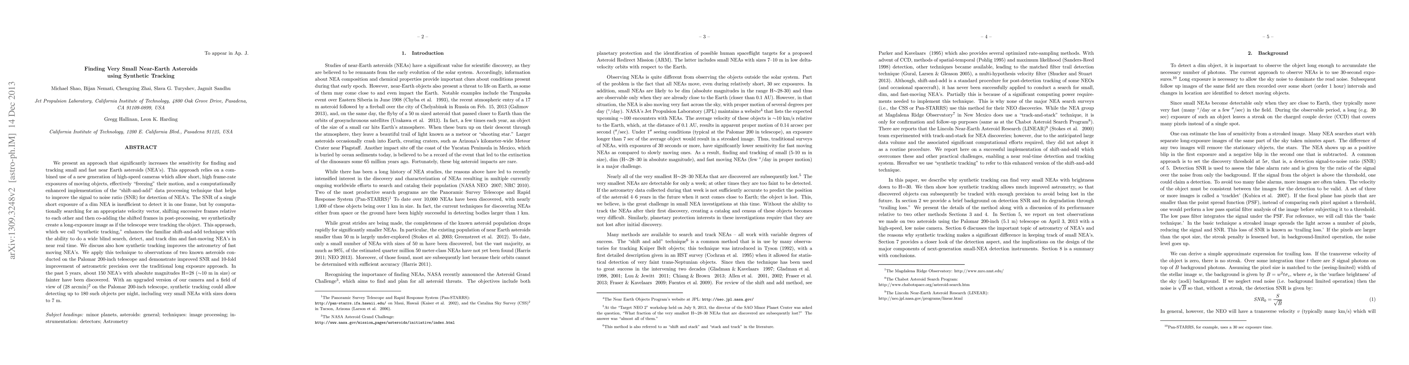 This paper introduces a novel "synthetic tracking" method that combines high-speed cameras and enhanced "shift-and-add" data processing to significantly improve detection and tracking of small, fast-moving near-Earth asteroids. The technique demonstrates a 10-fold increase in astrometric precision and the potential to detect up to 180 faint NEAs per night, including objects as small as 7 meters.