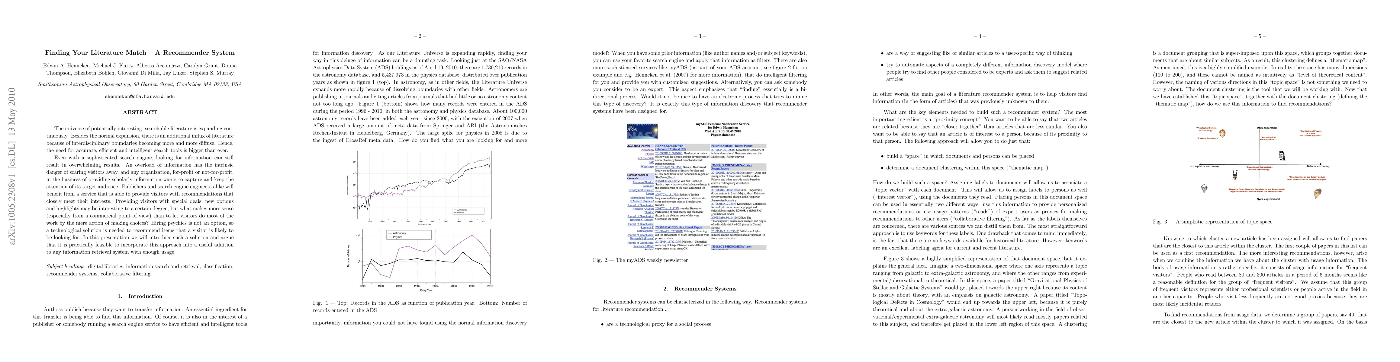 The universe of potentially interesting, searchable literature is expanding continuously. Besides the normal expansion, there is an additional influx of literature because of interdisciplinary boundaries becoming more and more diffuse. Hence, the need for accurate, efficient and intelligent search tools is bigger than ever. Even with a sophisticated search engine, looking for information can still result in overwhelming results. An overload of information has the intrinsic danger of scaring visitors away, and any organization, for-profit or not-for-profit, in the business of providing scholarly information wants to capture and keep the attention of its target audience. Publishers and search engine engineers alike will benefit from a service that is able to provide visitors with recommendations that closely meet their interests. Providing visitors with special deals, new options and highlights may be interesting to a certain degree, but what makes more sense (especially from a commercial point of view) than to let visitors do most of the work by the mere action of making choices? Hiring psychics is not an option, so a technological solution is needed to recommend items that a visitor is likely to be looking for. In this presentation we will introduce such a solution and argue that it is practically feasible to incorporate this approach into a useful addition to any information retrieval system with enough usage.