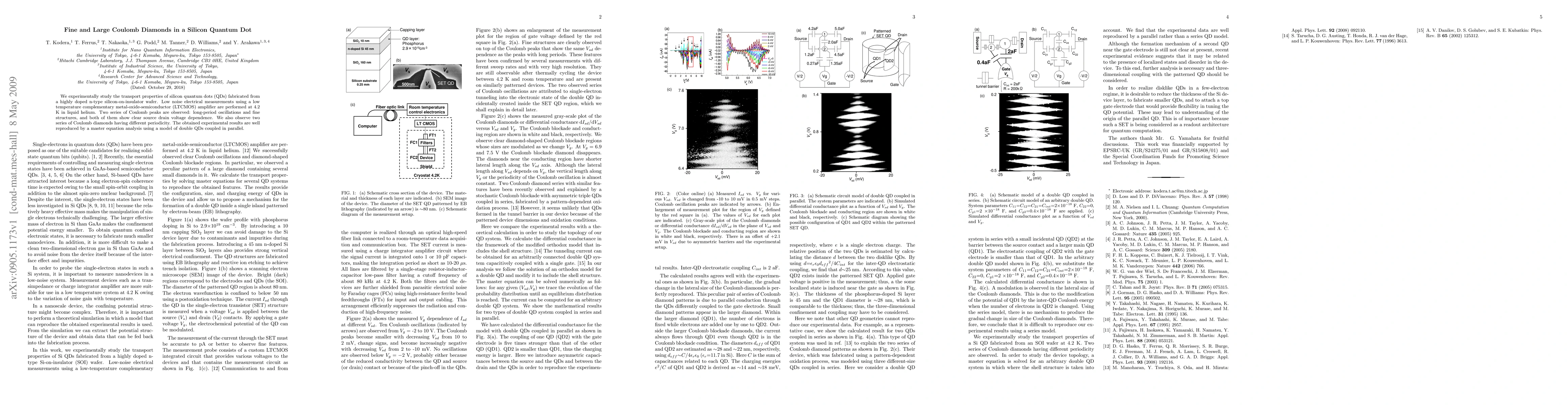 The paper presents experimental studies on silicon quantum dots, revealing two sets of Coulomb peaks with distinct periodicities at 4.2K. These findings align with a model of double QDs coupled in parallel, suggesting potential for advancements in quantum computing and low-temperature electronics.