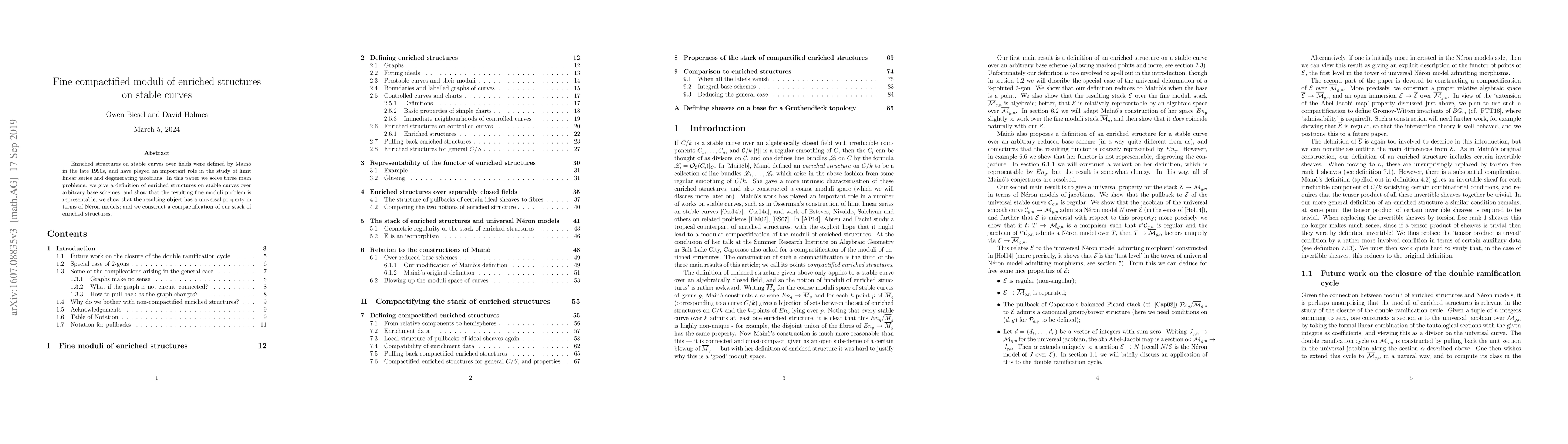 Enriched structures on stable curves over fields were defined by Maino in the late 1990s, and have played an important role in the study of limit linear series and degenerating jacobians. In this paper we solve three main problems: we give a definition of enriched structures on stable curves over arbitrary base schemes, and show that the resulting fine moduli problem is representable; we show that the resulting object has a universal property in terms of N\'eron models; and we construct a compactification of our stack of enriched structures.