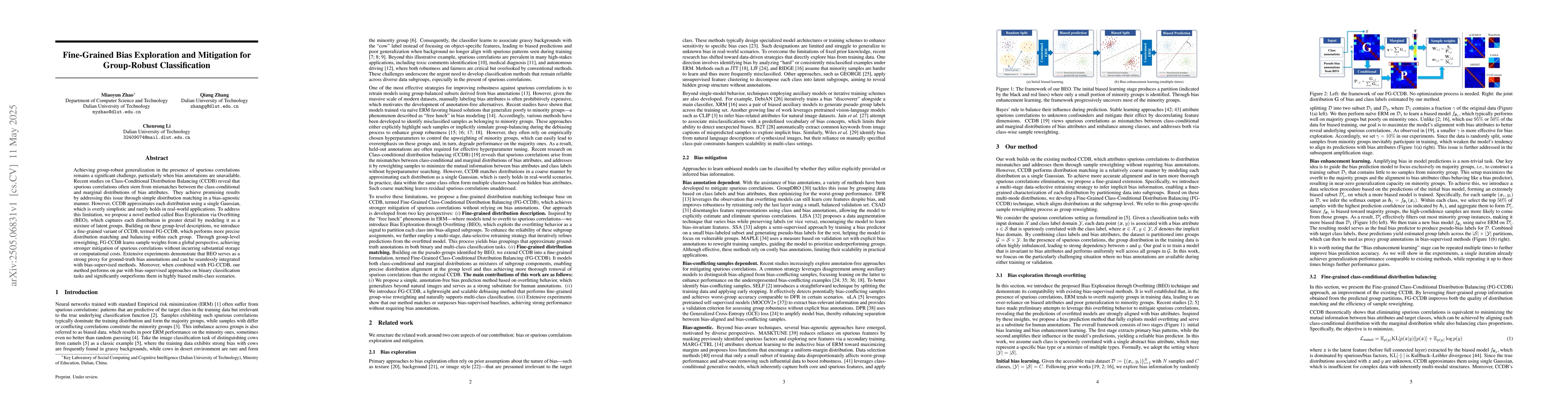 This work stands out by moving beyond single Gaussian approximations in CCDB, using mixture models to capture class-conditional and marginal distributions of bias attributes more accurately, thereby improving group-robust classification.