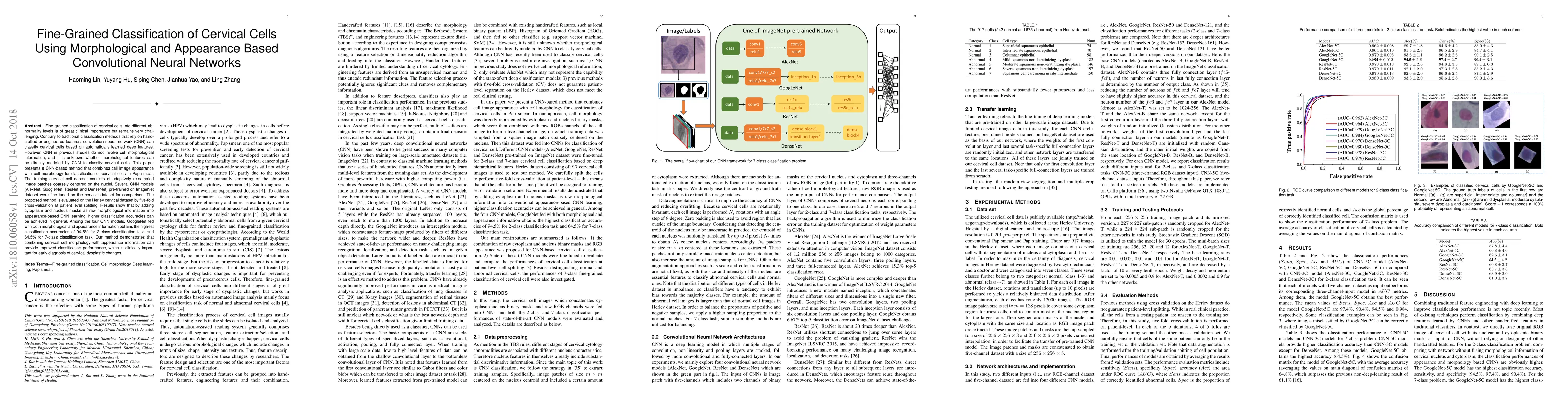 This research paper proposes a convolutional neural network (CNN) method that integrates both morphological and appearance features of cervical cells to enhance the classification of cervical abnormalities. By fine-tuning pre-trained CNN models like AlexNet, GoogleNet, ResNet, and DenseNet, the study demonstrates that incorporating morphological information, such as cytoplasm and nucleus masks, alongside appearance data significantly improves classification accuracy, achieving up to 94.5% for a 2-class task and 64.5% for a 7-class task. This approach holds clinical promise for early detection of cervical dysplastic changes.