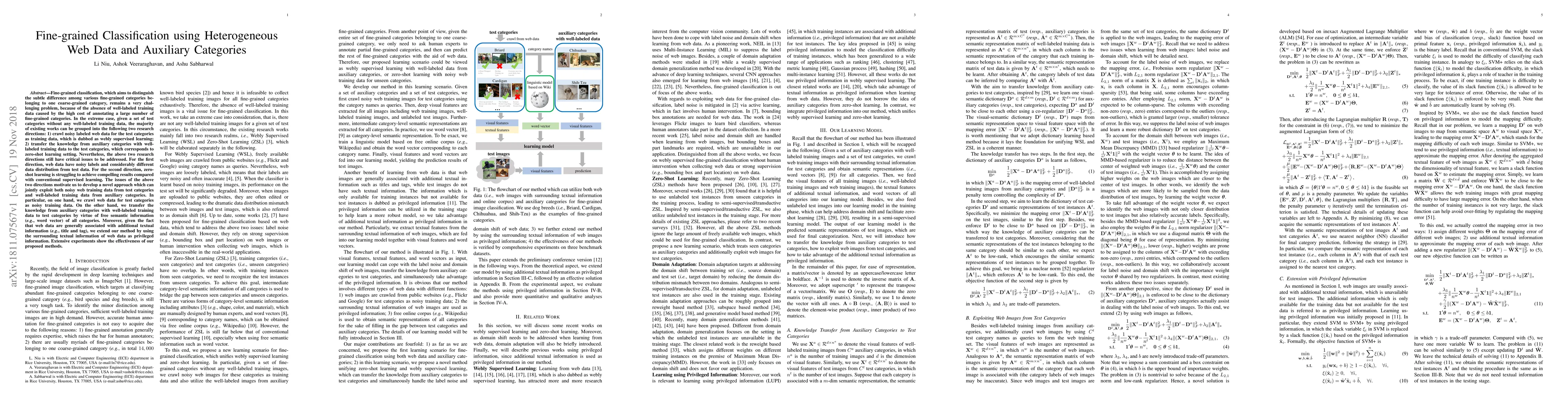 This research paper proposes a novel approach to fine-grained classification using heterogeneous web data and auxiliary categories, overcoming challenges of noisy labels and differing distributions.