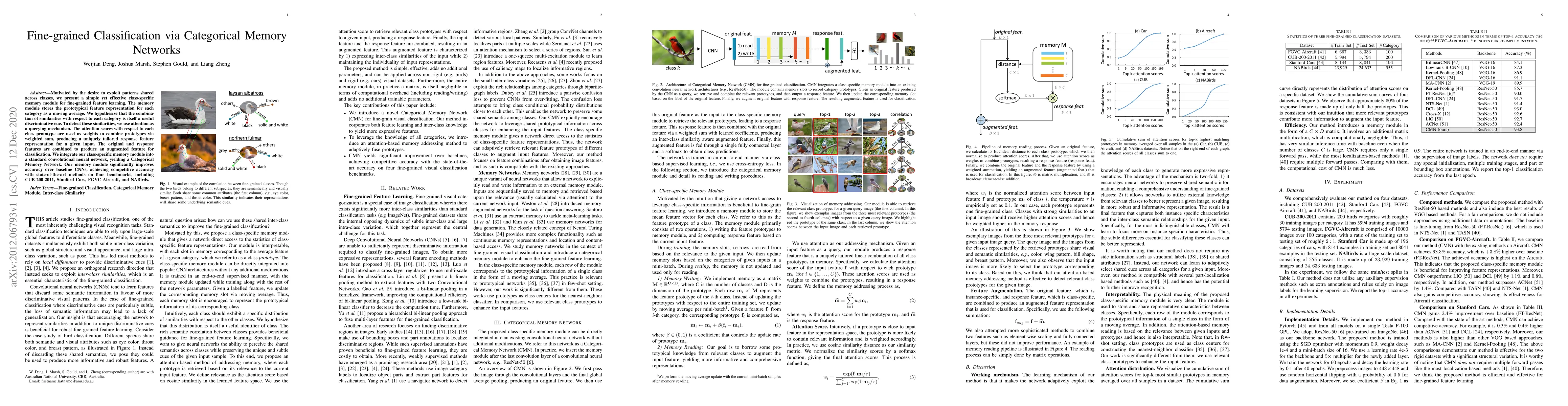 A new neural network architecture, Categorical Memory Network, improves accuracy on fine-grained classification tasks by using a class-specific memory module that stores prototype features for each category.