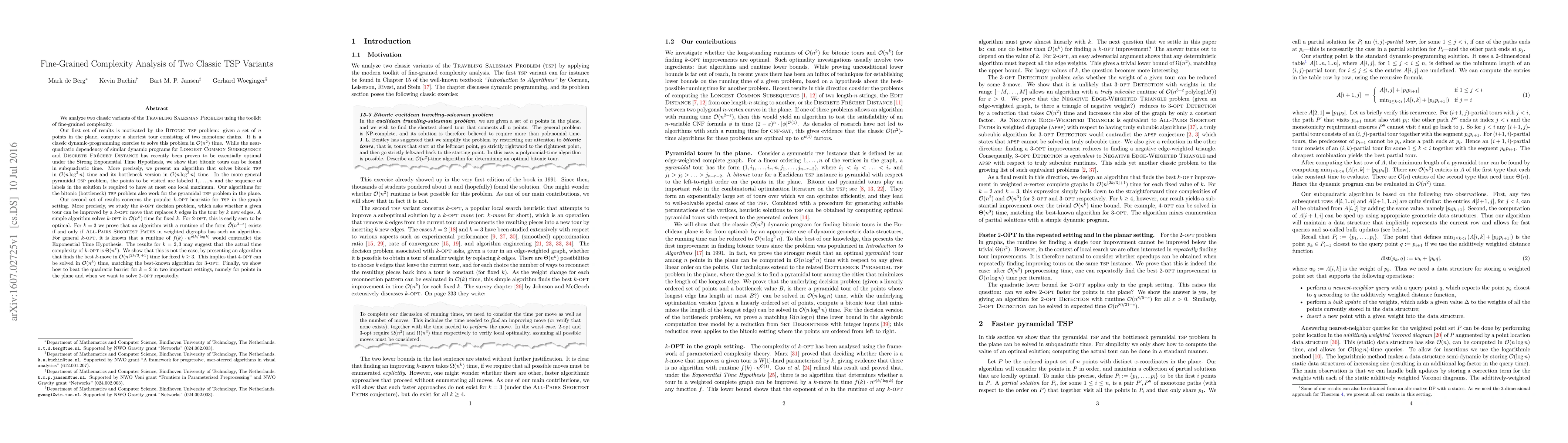 Researchers developed efficient algorithms to solve two classic variants of the Traveling Salesman Problem: a subquadratic time algorithm for the Bitonic TSP problem and an improved algorithm for 4-OPT that matches the best-known algorithm for 3-OPT, breaking the quadratic barrier.