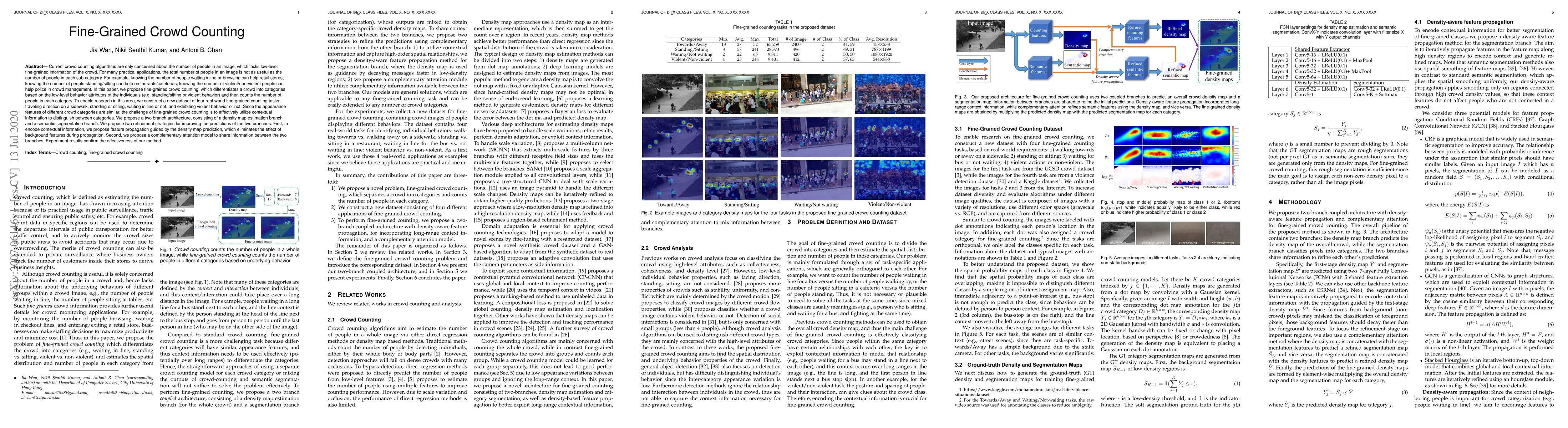 This paper proposes a fine-grained crowd counting method that categorizes individuals based on behavior attributes and counts them in each category. It introduces a new dataset for four specific counting tasks and employs a two-branch architecture with refinement strategies to utilize contextual information effectively.