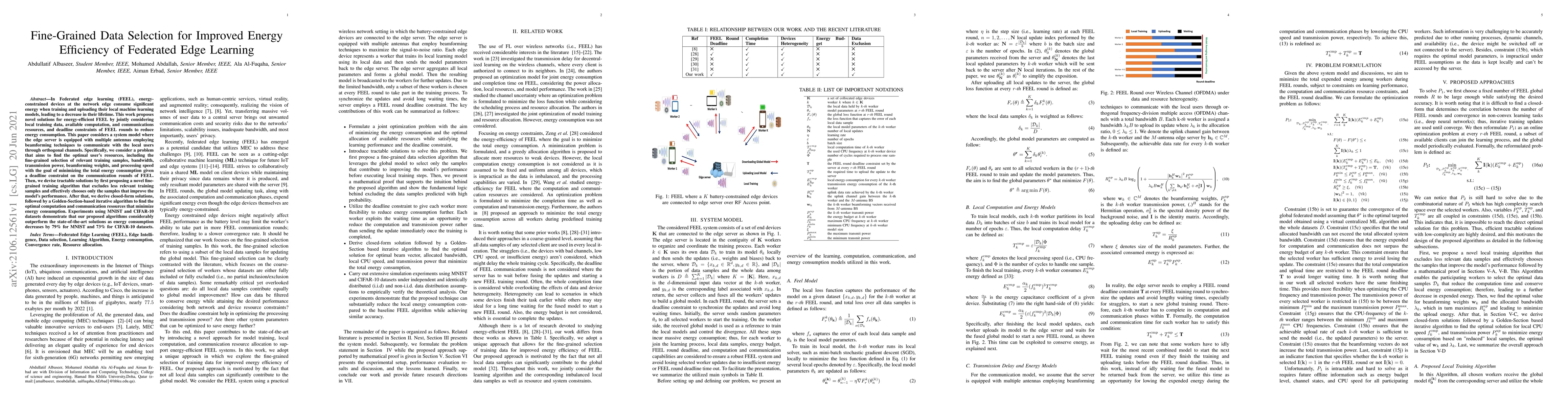 This paper proposes novel fine-grained data selection and resource allocation strategies to enhance energy efficiency in Federated Edge Learning (FEEL), achieving up to 79% reduction in energy consumption for MNIST and 73% for CIFAR-10 datasets compared to state-of-the-art methods. The approach optimizes training sample selection, bandwidth, transmission power, and beamforming to meet deadline constraints.
