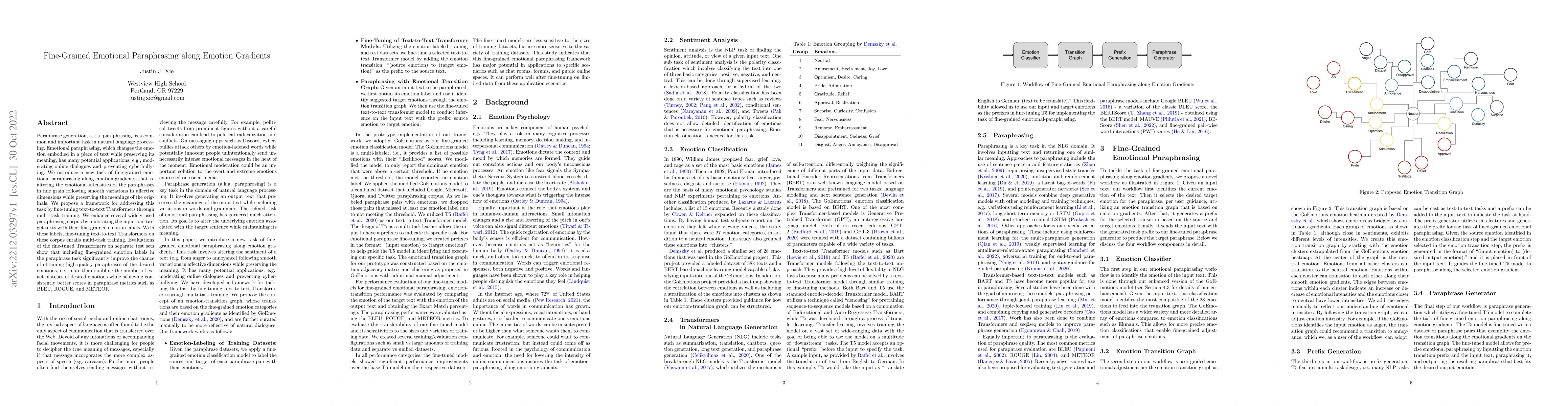 This paper introduces a new task of fine-grained emotional paraphrasing along emotion gradients, aiming to adjust emotional intensity in paraphrases while preserving meaning. The authors propose a framework using fine-tuned Transformers for multi-task training, significantly improving the generation of high-quality paraphrases with desired emotional intensities.