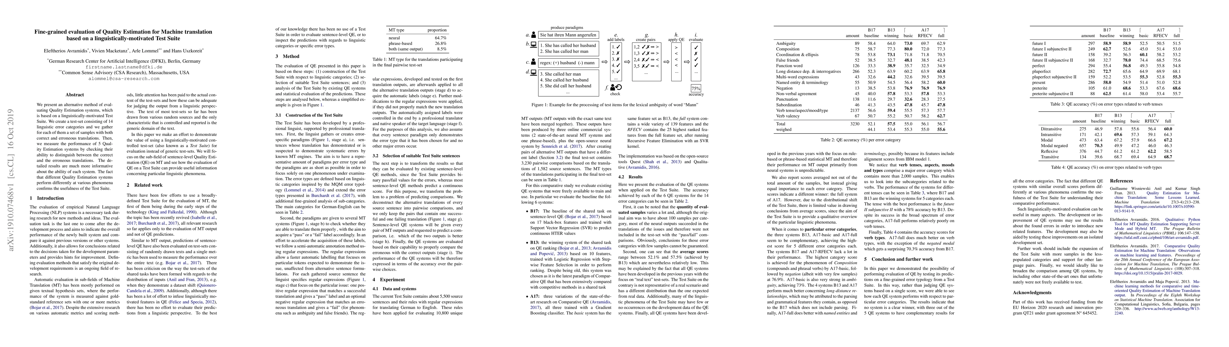 This research introduces a linguistically-motivated Test Suite to evaluate Quality Estimation systems for machine translation. The Test Suite, comprising 14 error categories with correct and erroneous translation samples, reveals detailed performance insights of 5 Quality Estimation systems, highlighting their varying abilities to distinguish between correct and incorrect translations.