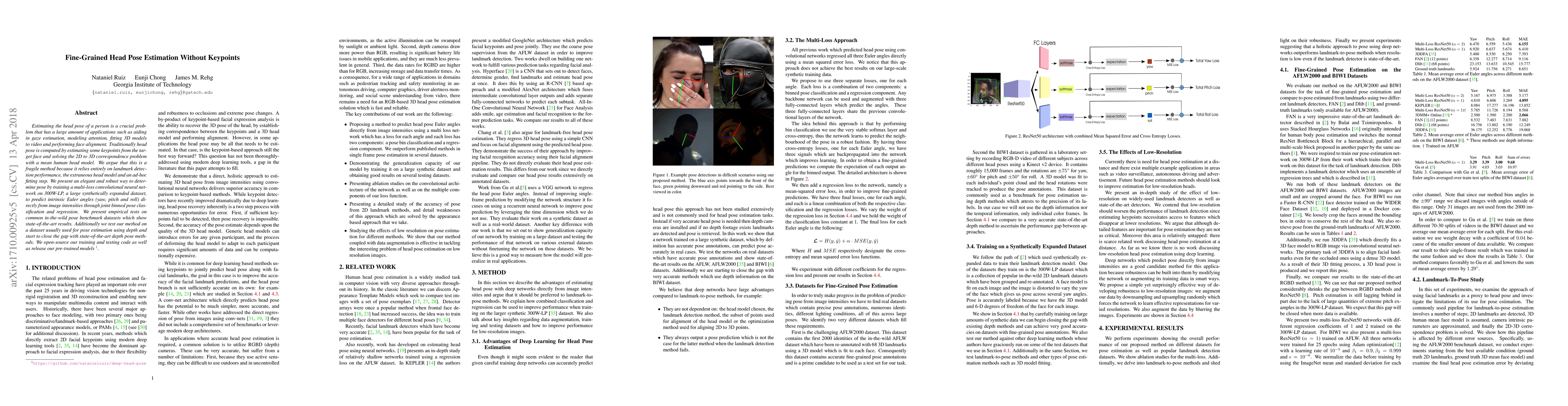 This paper presents a novel method for fine-grained head pose estimation directly from image intensities without relying on keypoint detection, using a multi-loss convolutional neural network trained on a large synthetic dataset. The approach achieves state-of-the-art results on standard benchmarks and begins to close the performance gap with depth-based methods.