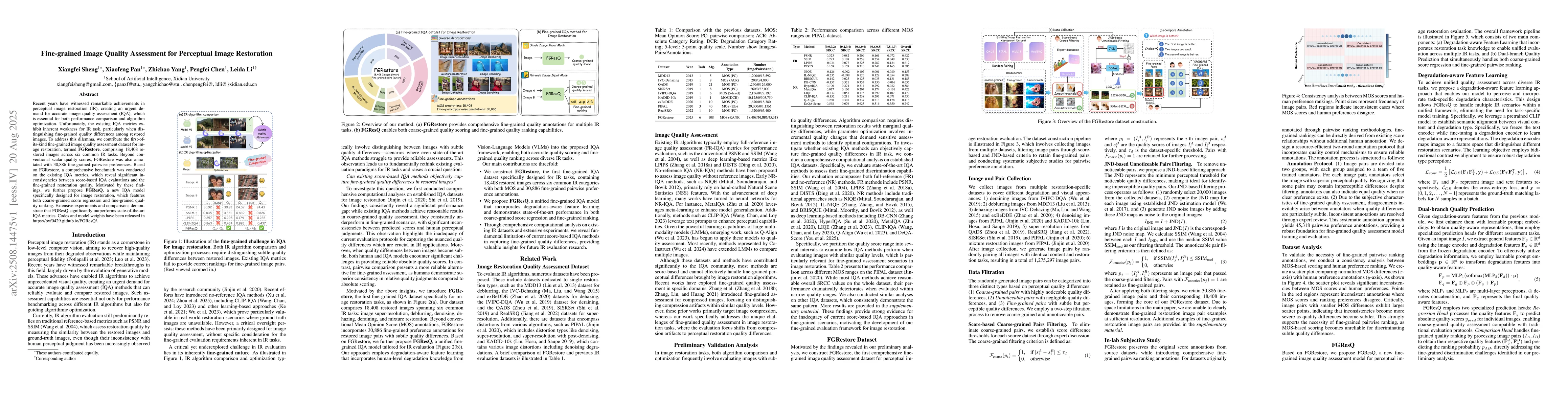 The paper presents FGRestore, a fine-grained dataset, and FGResQ, a novel IQA model specifically designed for image restoration tasks, combining coarse-grained score regression and fine-grained quality ranking.