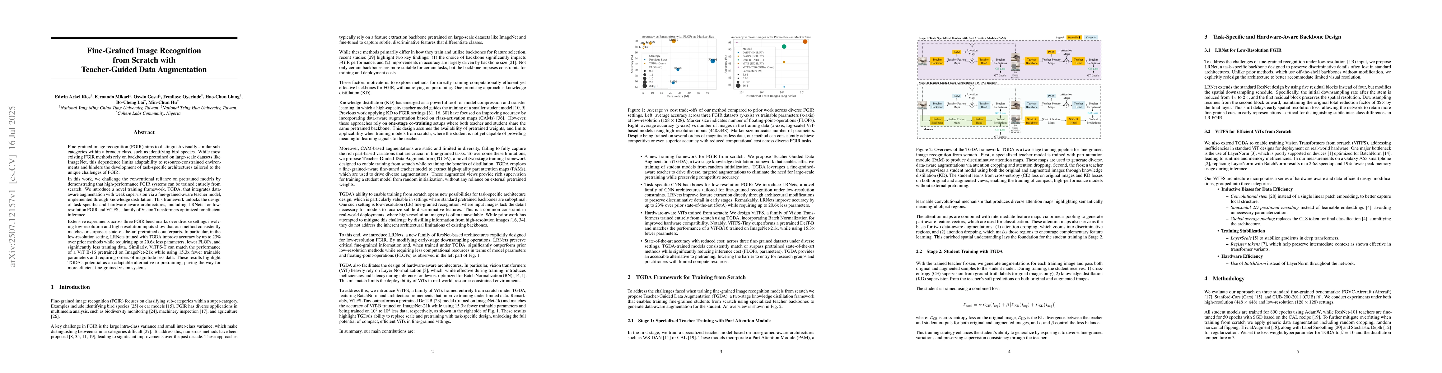 Fine-grained image recognition (FGIR) aims to distinguish visually similar sub-categories within a broader class, such as identifying bird species. While most existing FGIR methods rely on backbones pretrained on large-scale datasets like ImageNet, this dependence limits adaptability to resource-constrained environments and hinders the development of task-specific architectures tailored to the unique challenges of FGIR. In this work, we challenge the conventional reliance on pretrained models by demonstrating that high-performance FGIR systems can be trained entirely from scratch. We introduce a novel training framework, TGDA, that integrates data-aware augmentation with weak supervision via a fine-grained-aware teacher model, implemented through knowledge distillation. This framework unlocks the design of task-specific and hardware-aware architectures, including LRNets for low-resolution FGIR and ViTFS, a family of Vision Transformers optimized for efficient inference. Extensive experiments across three FGIR benchmarks over diverse settings involving low-resolution and high-resolution inputs show that our method consistently matches or surpasses state-of-the-art pretrained counterparts. In particular, in the low-resolution setting, LRNets trained with TGDA improve accuracy by up to 23\% over prior methods while requiring up to 20.6x less parameters, lower FLOPs, and significantly less training data. Similarly, ViTFS-T can match the performance of a ViT B-16 pretrained on ImageNet-21k while using 15.3x fewer trainable parameters and requiring orders of magnitudes less data. These results highlight TGDA's potential as an adaptable alternative to pretraining, paving the way for more efficient fine-grained vision systems.