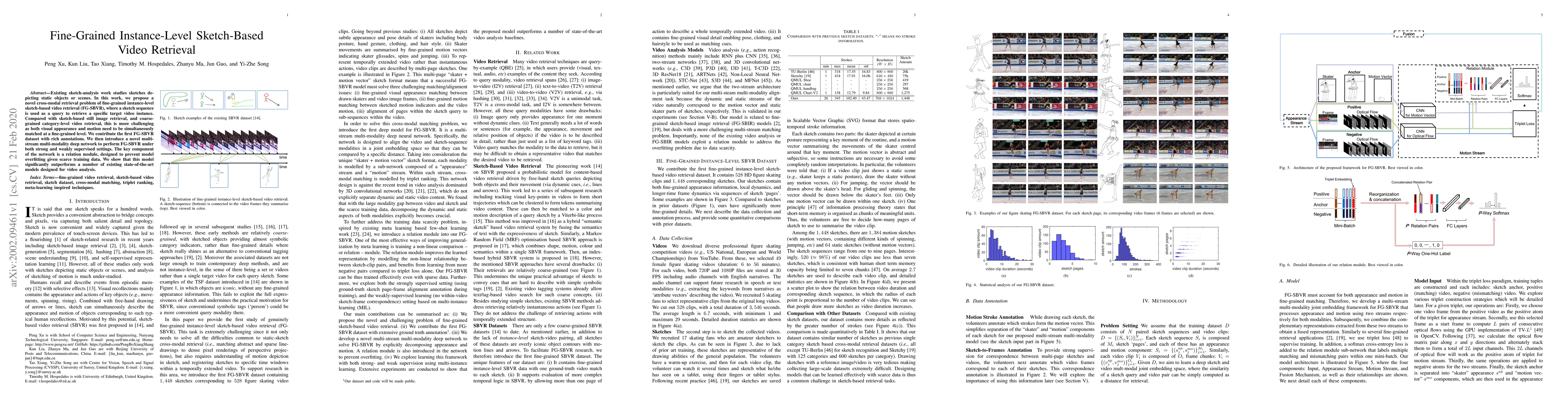 This paper introduces a novel fine-grained instance-level sketch-based video retrieval (FG-SBVR) method, proposing a dataset and a multi-stream deep network with a relation module to match both visual appearance and motion from sketch sequences to specific video instances. The model outperforms existing state-of-the-art video analysis models.