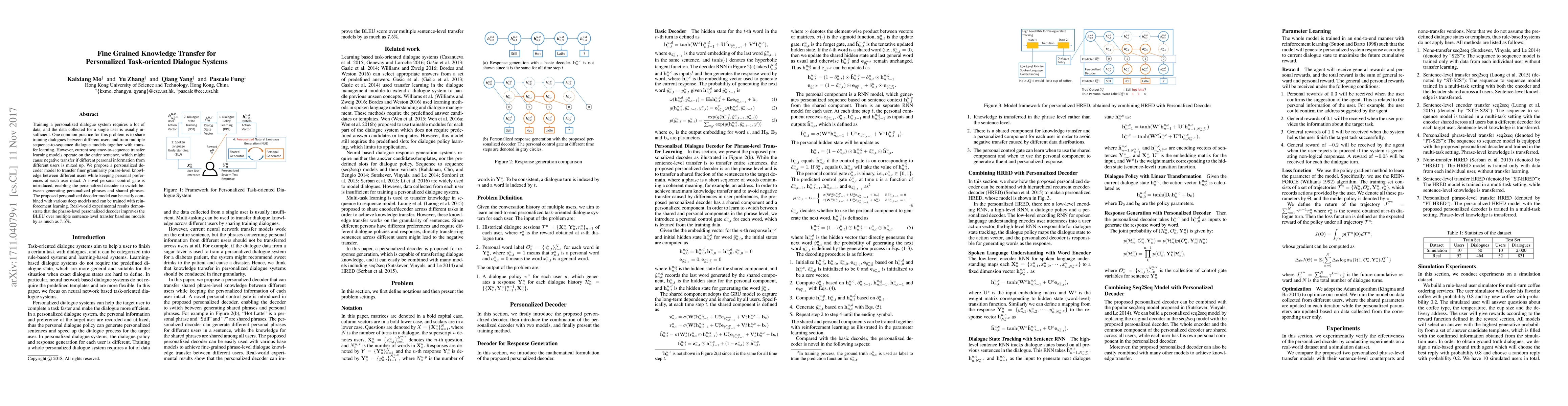 This paper proposes a personalized decoder model for task-oriented dialogue systems that transfers fine-grained phrase-level knowledge between users while preserving individual preferences. The model includes a personal control gate to switch between personalized and shared phrases, achieving a 7.5% improvement in BLEU score over sentence-level transfer baselines.