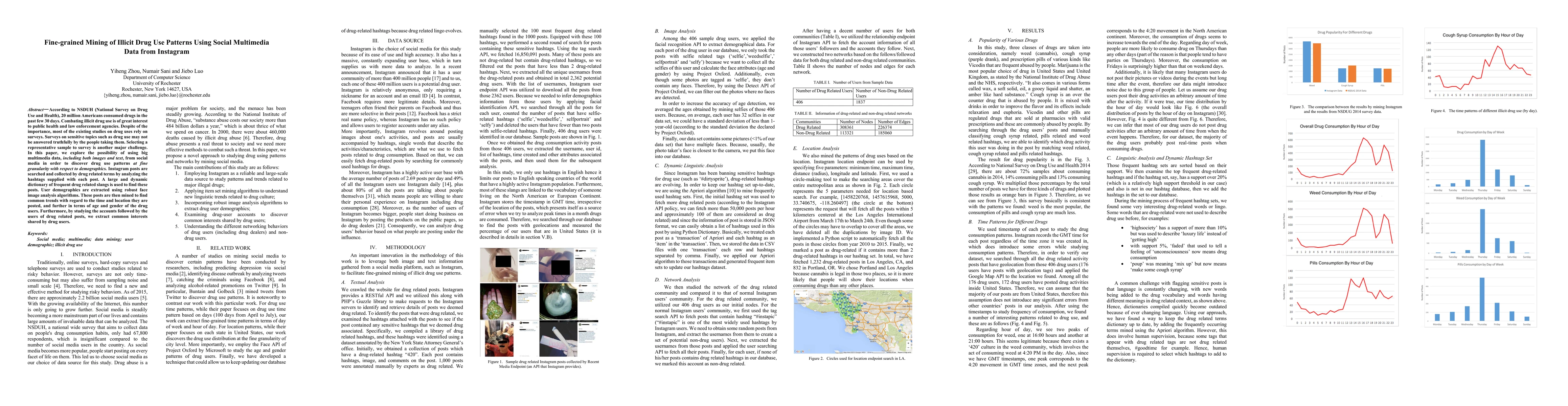 This paper investigates illicit drug use patterns using Instagram's multimedia data, employing hashtags and a dictionary of drug-related slangs to identify relevant posts. It analyzes demographic trends and common interests among users, aiming to provide a more reliable alternative to traditional surveys.