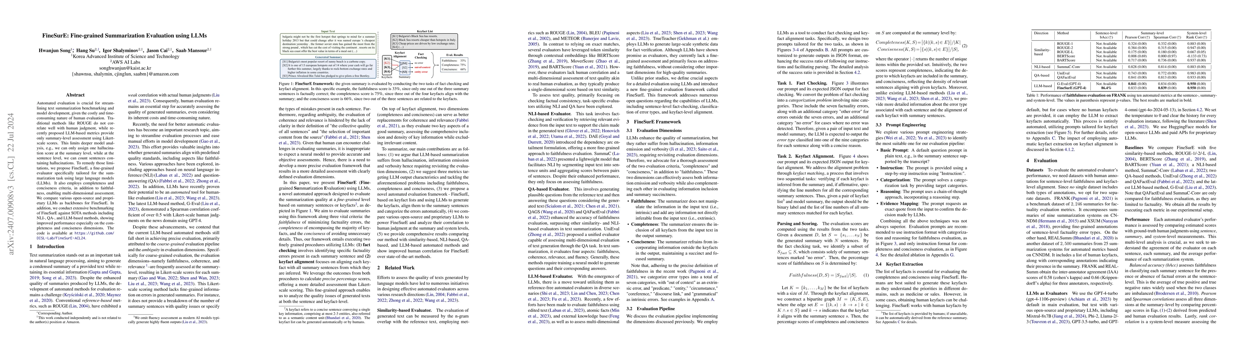 This paper introduces FineSurE, a fine-grained, multi-dimensional evaluation framework for text summarization using large language models (LLMs). It outperforms existing methods by assessing summaries on completeness, conciseness, and faithfulness at a granular level, thereby providing a more nuanced analysis than summary-level assessments.