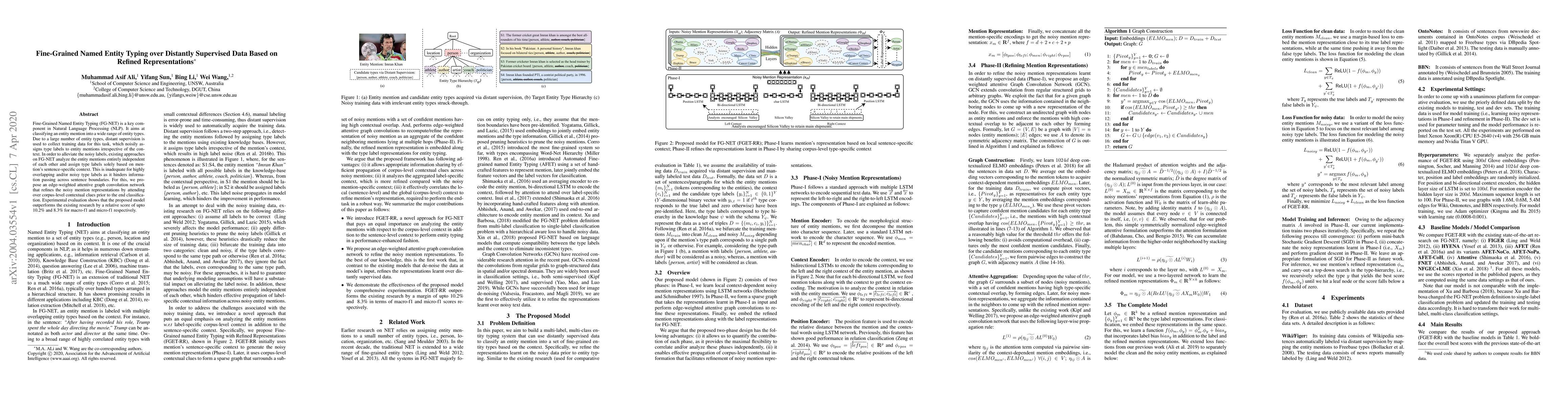 The research proposes FGET-RR, a novel approach for Fine-Grained Named Entity Typing (FG-NET) that refines noisy mention representations using a graph convolutional network attentive to corpus-level contextual clues. It consists of two phases: Phase-I learns local context-dependent noisy mention representations using LSTM networks, and Phase-II refines these representations by constructing an undirected graph with nodes as entity mentions and edges connecting mentions with high contextual overlap.