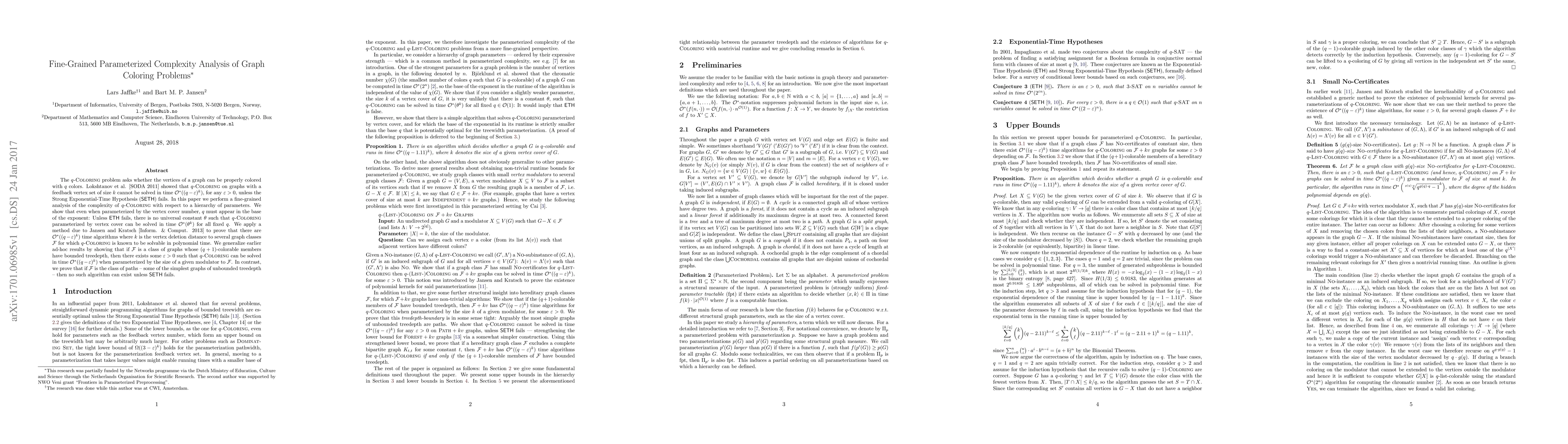 This paper conducts a fine-grained complexity analysis of the $q$-Coloring problem parameterized by various graph parameters. It demonstrates that for $q$-Coloring parameterized by vertex cover, $q$ must appear in the exponent unless the Strong Exponential-Time Hypothesis fails, and it shows that for certain graph classes $\mathcal{F}$, $q$-Coloring can be solved in time $\mathcal{O}^*((q-\varepsilon)^k)$, contrasting with the intractability for the class of paths unless SETH is false.