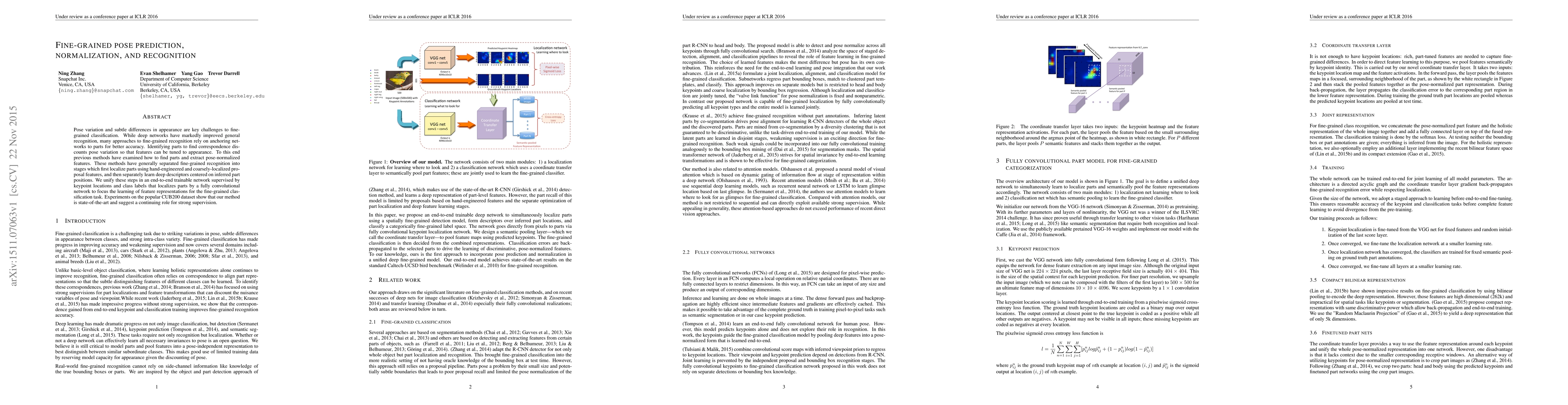 This paper proposes an end-to-end trainable network for fine-grained pose prediction and recognition, unifying part localization and feature extraction into a single model supervised by keypoint locations and class labels. This approach outperforms existing methods on the CUB200 dataset, highlighting the effectiveness of strong supervision.