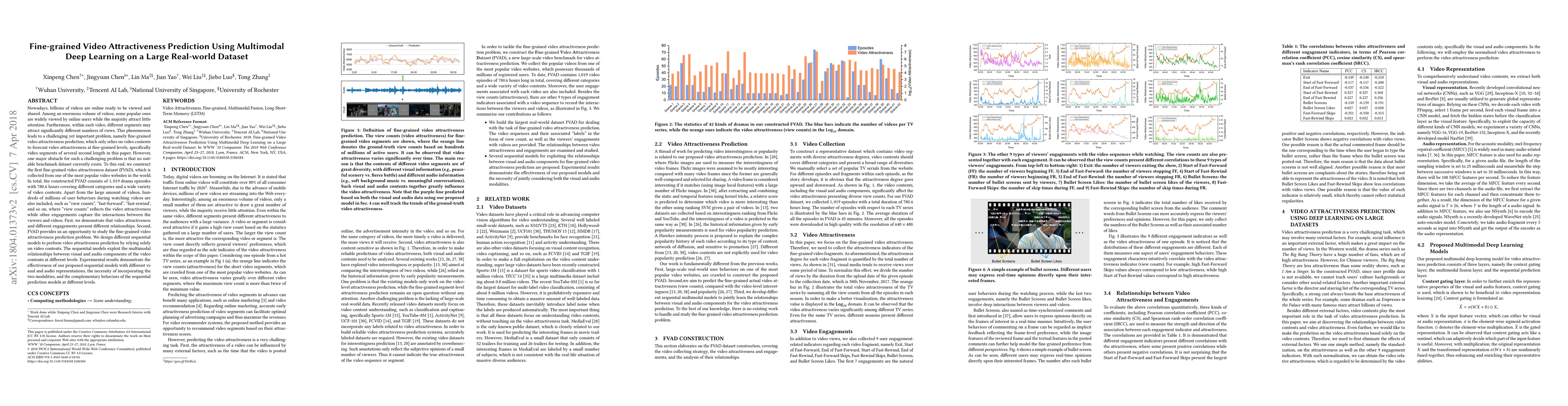 This paper constructs a large fine-grained video attractiveness dataset (FVAD) from a popular video website, including 1,019 drama episodes and user engagement data. It proposes multimodal deep learning models to predict video attractiveness based on visual and audio features, demonstrating their effectiveness through experiments.