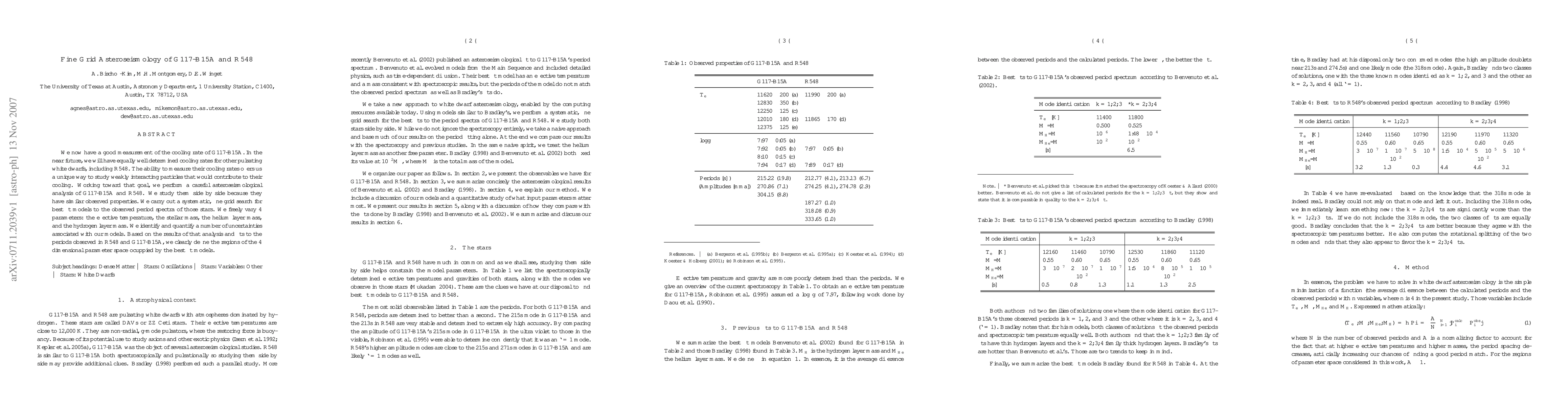 We now have a good measurement of the cooling rate of G117-B15A. In the near future, we will have equally well determined cooling rates for other pulsating white dwarfs, including R548. The ability to measure their cooling rates offers us a unique way to study weakly interacting particles that would contribute to their cooling. Working toward that goal, we perform a careful asteroseismological analysis of G117-B15A and R548. We study them side by side because they have similar observed properties. We carry out a systematic, fine grid search for best fit models to the observed period spectra of those stars. We freely vary 4 parameters: the effective temperature, the stellar mass, the helium layer mass, and the hydrogen layer mass. We identify and quantify a number of uncertainties associated with our models. Based on the results of that analysis and fits to the periods observed in R548 and G117-B15A, we clearly define the regions of the 4 dimensional parameter space ocuppied by the best fit models.