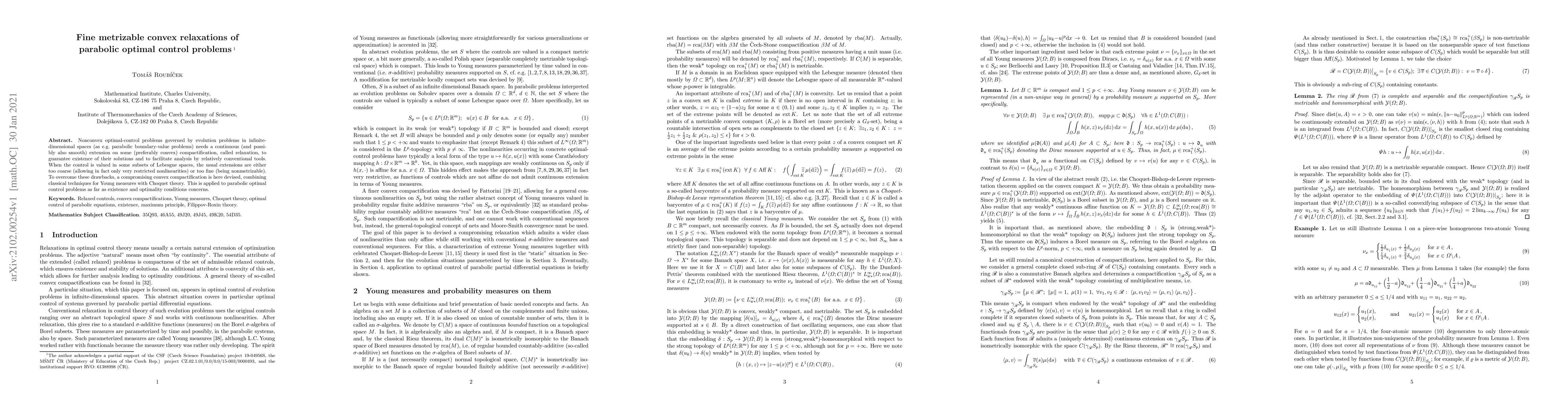 This paper proposes a fine metrizable convex relaxation for nonconvex parabolic optimal control problems, utilizing a combination of Young measures and Choquet theory to balance the trade-off between coarse and overly fine extensions, thereby ensuring the existence of solutions and facilitating analysis. The method is applied to derive existence and optimality conditions for such problems.