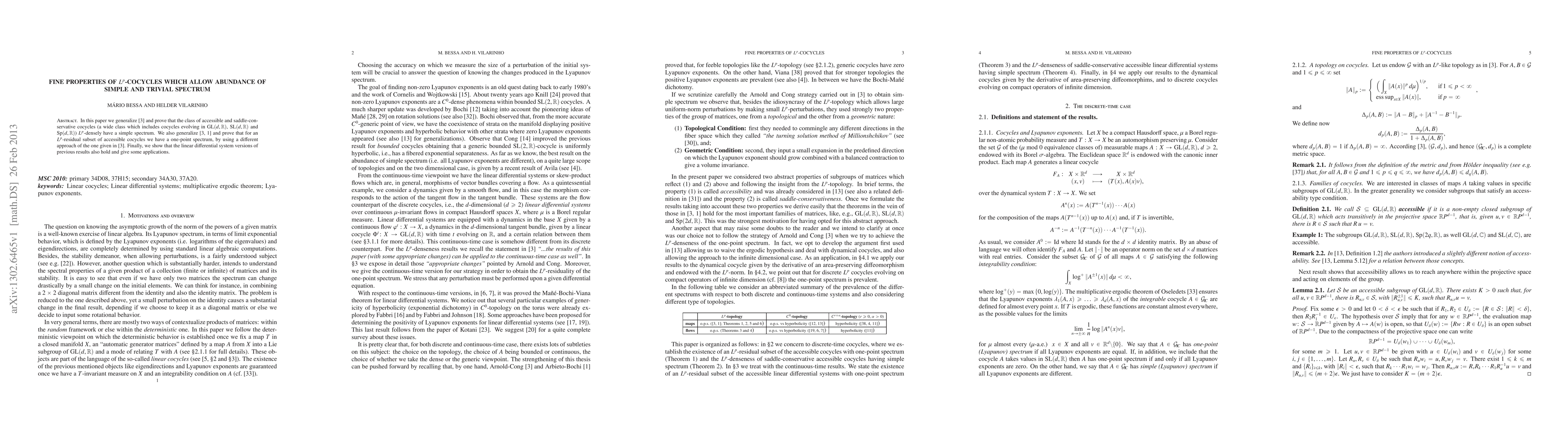 In this paper we generalize [3] and prove that the class of accessible and saddle-conservative cocycles (a wide class which includes cocycles evolving in GL(d,R), SL(d,R) and Sp(d,R) Lp-densely have a simple spectrum. We also generalize [3, 1] and prove that for an Lp-residual subset of accessible cocycles we have a one-point spectrum, by using a different approach of the one given in [3]. Finally, we show that the linear differential system versions of previous results also hold and give some applications.