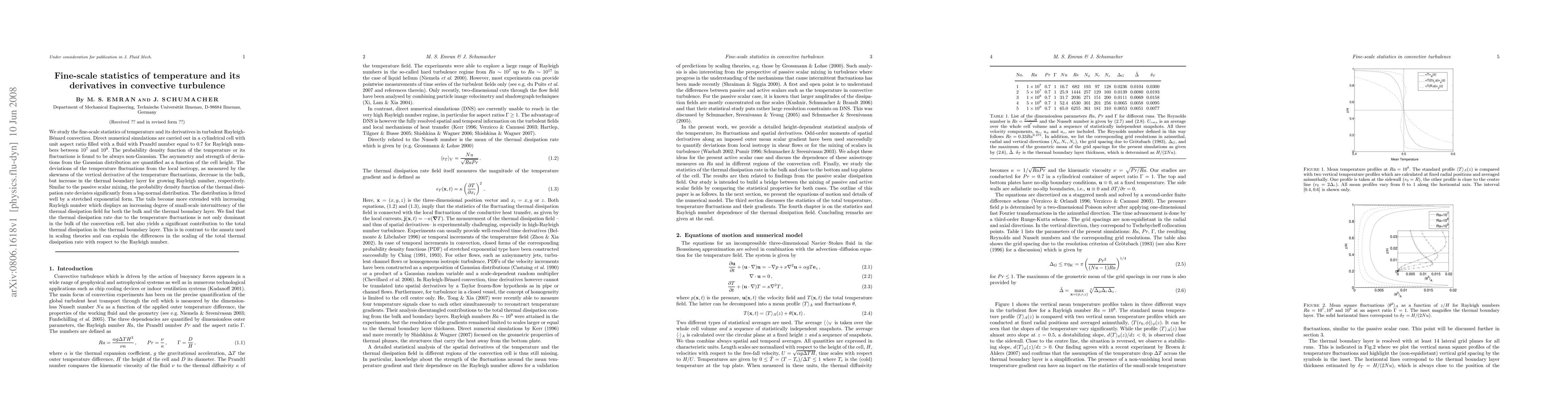We study the fine-scale statistics of temperature and its derivatives in turbulent Rayleigh-Benard convection. Direct numerical simulations are carried out in a cylindrical cell with unit aspect ratio filled with a fluid with Prandtl number equal to 0.7 for Rayleigh numbers between 10^7 and 10^9. The probability density function of the temperature or its fluctuations is found to be always non-Gaussian. The asymmetry and strength of deviations from the Gaussian distribution are quantified as a function of the cell height. The deviations of the temperature fluctuations from the local isotropy, as measured by the skewness of the vertical derivative of the temperature fluctuations, decrease in the bulk, but increase in the thermal boundary layer for growing Rayleigh number, respectively. Similar to the passive scalar mixing, the probability density function of the thermal dissipation rate deviates significantly from a log-normal distribution. The distribution is fitted well by a stretched exponential form. The tails become more extended with increasing Rayleigh number which displays an increasing degree of small-scale intermittency of the thermal dissipation field for both the bulk and the thermal boundary layer. We find that the thermal dissipation rate due to the temperature fluctuations is not only dominant in the bulk of the convection cell, but also yields a significant contribution to the total thermal dissipation in the thermal boundary layer. This is in contrast to the ansatz used in scaling theories and can explain the differences in the scaling of the total thermal dissipation rate with respect to the Rayleigh number.