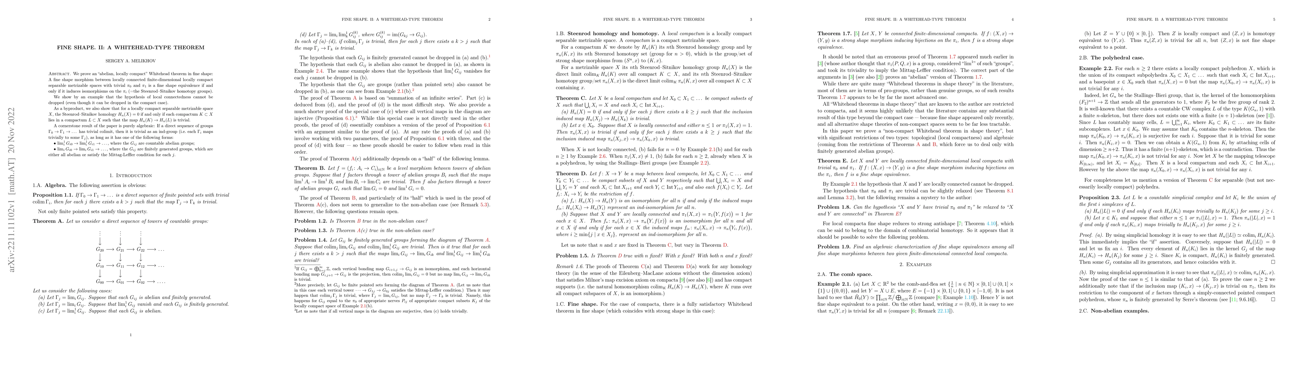 We prove an "abelian, locally compact" Whitehead theorem in fine shape: A fine shape morphism between locally connected finite-dimensional locally compact separable metrizable spaces with trivial $\pi_0$ and $\pi_1$ is a fine shape equivalence if and only if it induces isomorphisms on the $\pi_i$ (=the Steenrod-Sitnikov homotopy groups). We show by an example that the hypothesis of local connectedness cannot be dropped (even though it can be dropped in the compact case). As a byproduct, we also show that for a locally compact separable metrizable space $X$, the Steenrod-Sitnikov homology $H_n(X)=0$ if and only if each compactum $K\subset X$ lies in a compactum $L\subset X$ such that the map $H_n(K)\to H_n(L)$ is trivial. A cornerstone result of the paper is purely algebraic: If a direct sequence of groups $\Gamma_0\to\Gamma_1\to\dots$ has trivial colimit, then it is trivial as an ind-group (i.e. each $\Gamma_i$ maps trivially to some $\Gamma_j$), as long as it has one of the following forms: $\bullet$ $\lim^1_i G_{i0}\to\lim^1_i G_{i1}\to\dots$, where the $G_{ij}$ are countable abelian groups; $\bullet$ $\lim_i G_{i0}\to\lim_i G_{i1}\to\dots$, where the $G_{ij}$ are finitely generated groups, which are either all abelian or satisfy the Mittag-Leffler condition for each $j$.