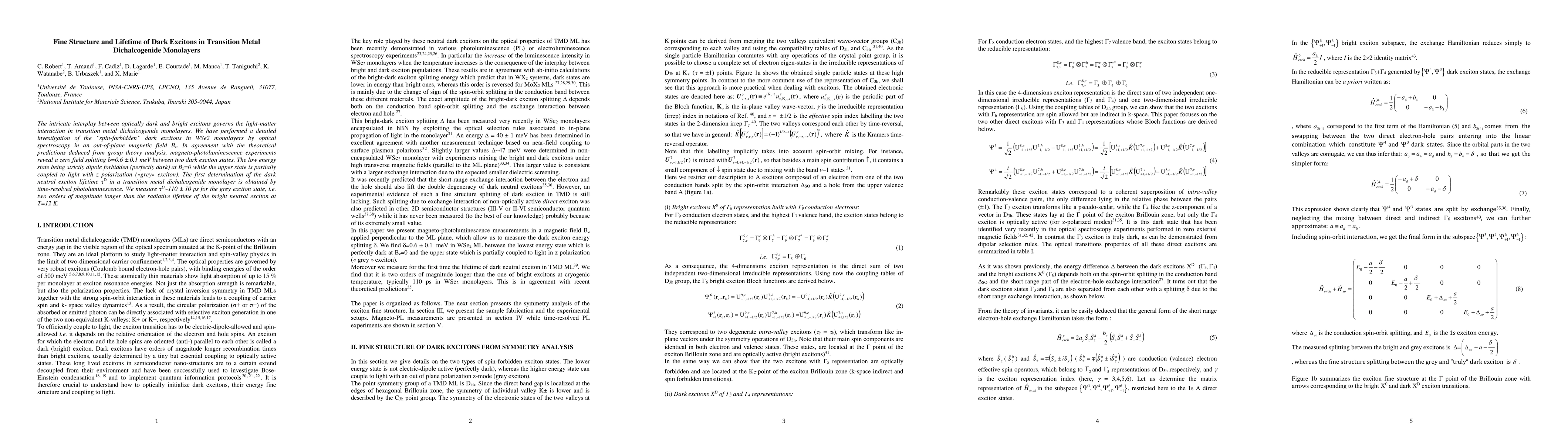 The study investigates the spin-forbidden dark excitons in WSe2 monolayers, revealing a zero-field splitting of $\delta=0.6 \pm 0.1$ meV and a dark exciton lifetime of $\tau_D \sim 110 \pm 10$ ps, significantly longer than the bright exciton's radiative lifetime.