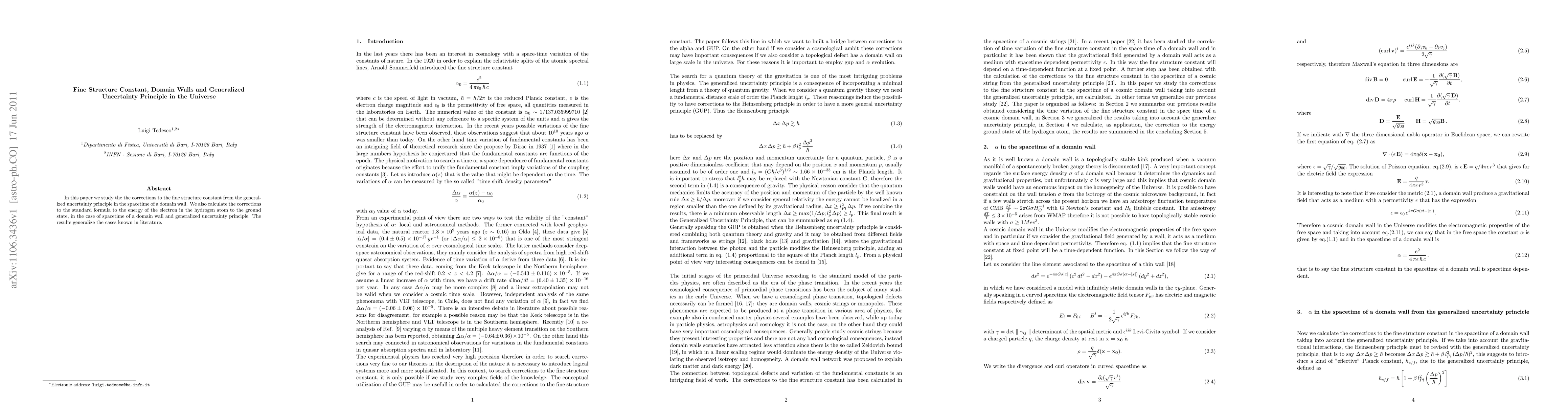 This paper investigates the impact of a generalized uncertainty principle in the spacetime of a domain wall on the fine-structure constant and electron energy levels in a hydrogen atom, yielding corrections that extend existing theoretical frameworks. The findings provide a broader understanding of quantum mechanics under modified uncertainty conditions.